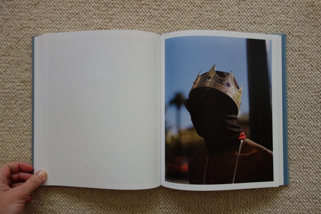 Halpern’s many excellent portraits are what give life and roundness to this story, but their consistently tender grimness adds up over the course of the book. Some of his subjects are obviously homeless, but nearly all seem down on their luck or otherwise living on the fringes. These are the same kind of people that have also inhabited Katy Grannan’s portraits of late – everyday fighters and survivors of all ages, genders, and ethnicities, who alternate between momentary swagger and more pervasive bone weary pessimism. Answers are looked for in many places – in a far off look, in crazed scribblings, in a telescope glance at the stars – but the irony of the grubby hand finding solace in a movie playing on a smartphone hits hard. This is a book that quietly undermines every glamorous aspect of Los Angeles, the jeweled crown bluntly revealed as cheap plastic.