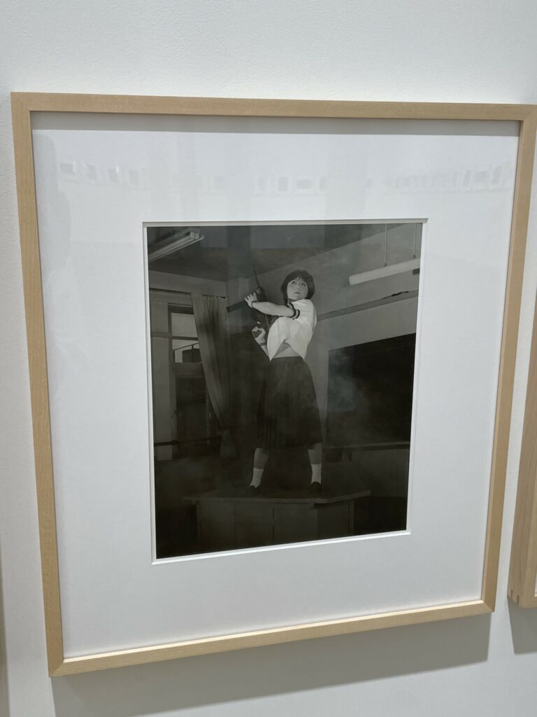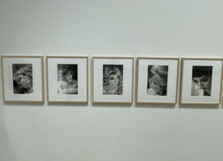 A couple of larger scale color images hung in the entry area offer a reminder that Morimura has often of late opted for more elaborate staging and complex costumes and props, the theatricality of these set pieces overwhelming the pared down intimacy that he regularly found in his smaller black-and-white works. The bigger color works are impressive in their own way, but can also feel so controlled and manicured that there isn’t much room for Morimura to interject himself. The black-and-white portraits feel more loosely improvisational and authentic (of course they are neither), but they offer us more personal entry points as viewers; with an elaborately triumphant Morimura as Elizabeth Taylor (wearing a towering gold headpiece), there is really only one plausible reaction – an acknowledging head nod to Morimura’s astonishing dedication to performative drama.