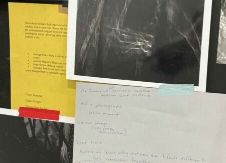 This is an understated almost muted show, whose richness and complexity seem to grow with time spent. Many of the photographs slowly reveal themselves as elusively luminous and unexpectedly seductive, and the wall of assemblages then draws us into an entire world of meaty artistic thinking. In the process, Pérez reveals themself as a sophisticated photograph thinker, ready to do the artistic spade work required to eventually construct images with consistent depth and resonance. After diving into the assemblages, nothing about Pérez’s approach feels accidental. Clearly, this is a photographer coming into a fuller sense of confidence and craft, becoming more and more willing to bet on following the pathways that make their voice unique.