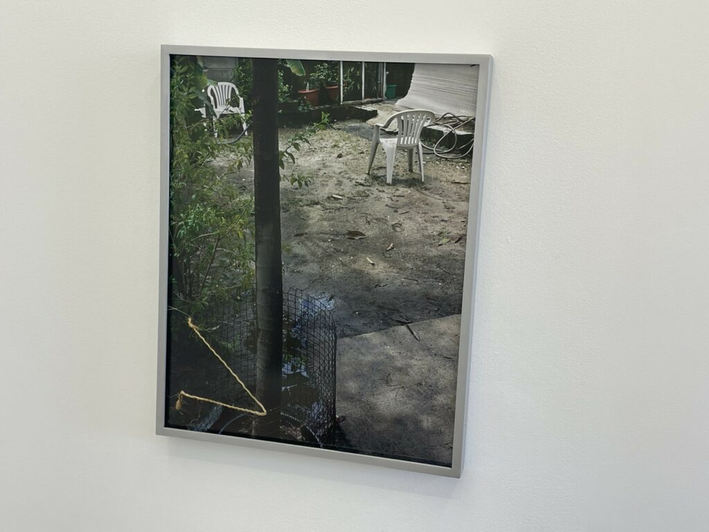 Several images use flooding (presumably in Puerto Rico) as a compositional element, with watery reflections, seepages, and shiny surfaces activating what might otherwise be mundane observations. In one photograph, the water rises over the curb to meet the angled line of a chain link fence; in another, a look down at a flooded area is decorated with the dark reflections of nearby trees and plants overhead, as well as the pattern of the fence again; and in a third, lazy droplets interrupt the flat reflecting surface of the floodwaters which have overrun a walled in area. In each case, Pérez makes sophisticated compositional use of the available tonalities and reflections, using layering and doubling to enrich the complex visual confusion.