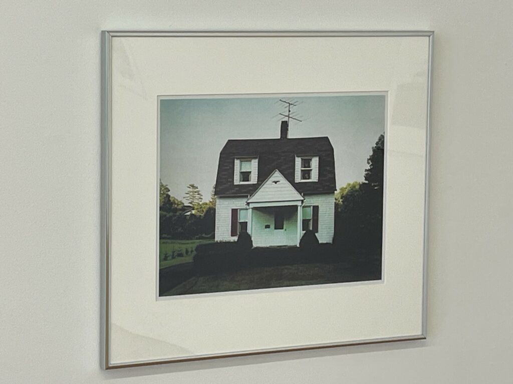 Calla Watson’s interventions range from the quietly subtle to the eerily ominous. In a few images, it takes some detective work to find Barrett. He’s been tucked into the shadows under the eaves in Henry Wessel’s house with tall grasses in front, placed in an upstairs window in Stephen Shore’s house with a roof antenna, and stands talking on his phone underneath the porch overhang of John Schott’s diner, and in each case, his presence shifts the narrative somewhat, making him the protagonist in an implied story.