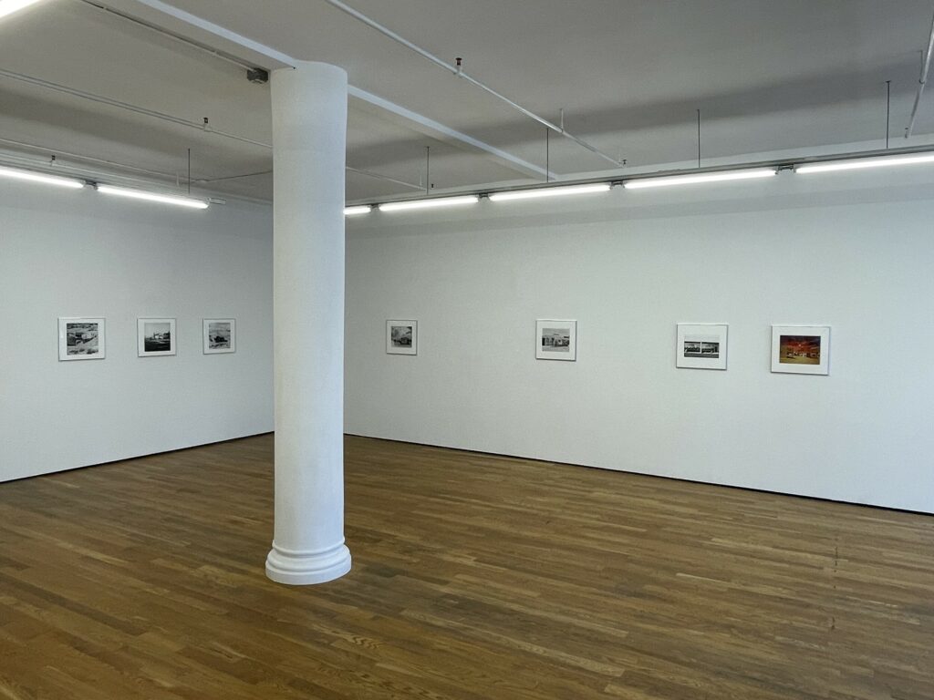JTF (just the facts): A total of 15 black-and-white and color photographs, framed in silver and matted, and hung against white walls in the main gallery space.