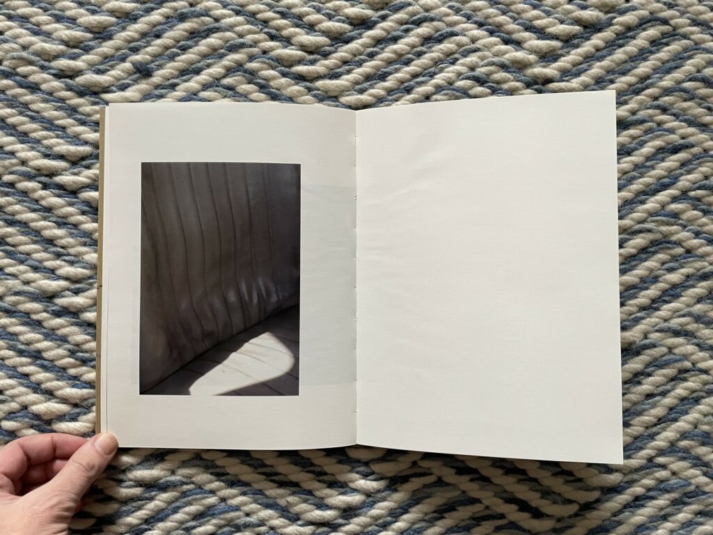 Of course, for anyone who knows how to drive, these images will at first glance seem altogether forgettable and banal. But they are more cinematic than the pictures from a standard owner’s manual, and the framing of the details is tight to the point of near abstraction. It’s as if Moschou has forced herself to closely observe the humble interior of a car like it was something foreign to her, noting each detail and its possibilities for being seen with style or grace. While there seem to be moments of anxiousness and frustration in these pictures, they are balanced by the gentle caress of a hand on an arm rest, the casual hanging of loose fingers off the steering wheel, or the twist of a shirt held fast by a belt with a silver buckle. The book ends with absence, a spot of sunlight cast across the ripples of leather on an empty seat.