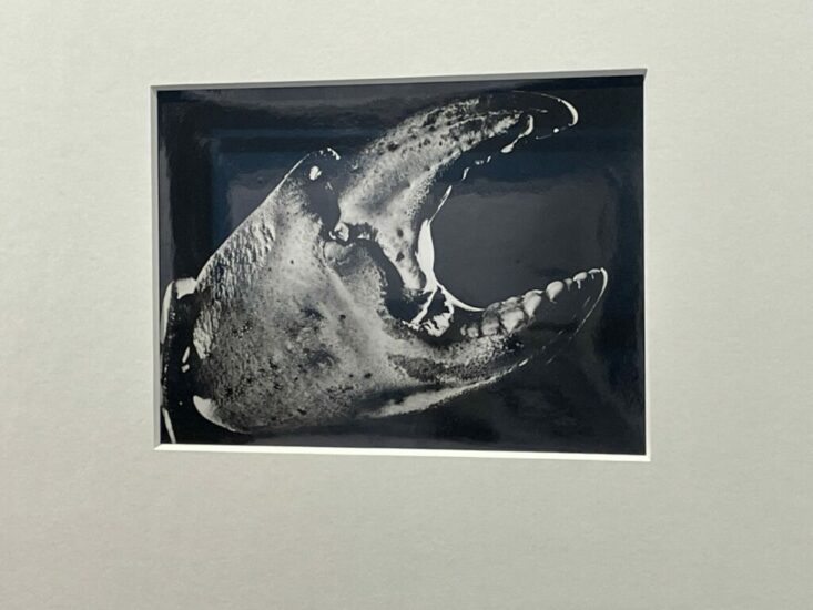 Les Douches la Galerie (here): This 1929 image by Jean Painlevé and Eli Lotar turns an up close, almost scientific photograph of a lobster claw into a Surrealist nightmare. Set against enveloping blackness with dramatic lighting, the pincers seem to rear up with encroaching menace. Priced at €10000.