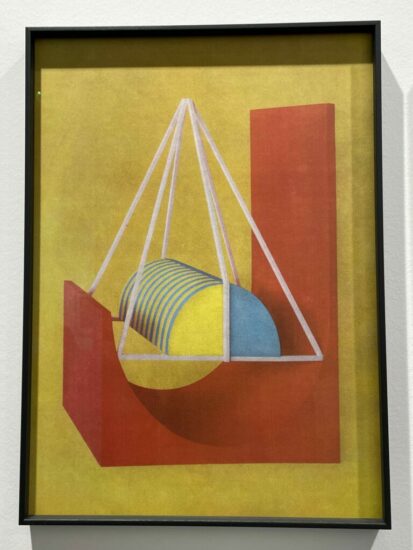 Galerie Binome (here): This playful 2021 image by Laurent Millet has the look and feel of a pastel drawing, perhaps illustrating some geometric flight of fancy from times gone by. What is more impressive is that not only is the work a contemporary photograph (made with the obsolete but appropriately tactile gum bichromate process), it documents an actual physical sculpture built by the artist. The works from the series feel like precisely executed geometric illustrations or book prints, with stylistic echoes from the Bauhaus and De Stijl wafting through the air. Priced at €3700.