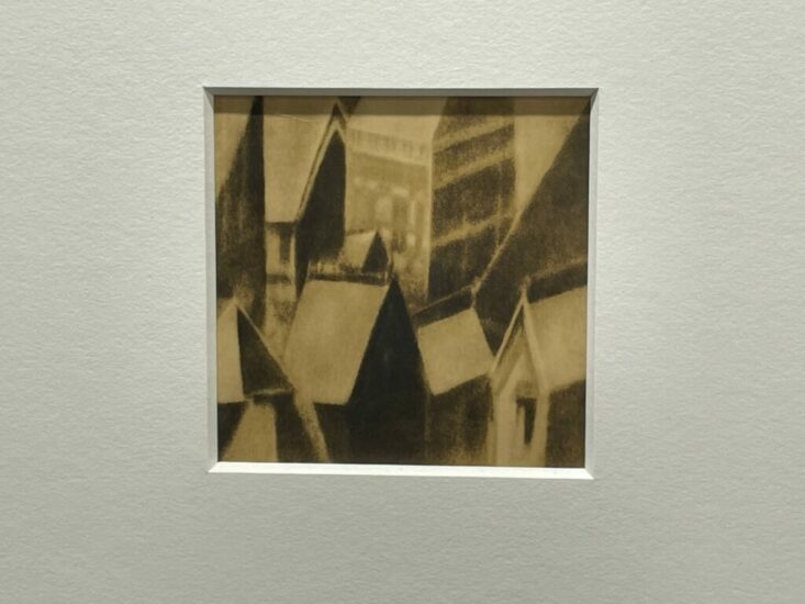 IBASHO (here): The planes of the crowded rooftops in the c1930 image by Masuzo Yamazaki have been reduced to flat parallelograms, the lights and darks pushed to extremes. The image feels almost Cubist in these reductions, the energy of the changing city turned into jutting angles and interlocked tonalities. Priced at €6500.