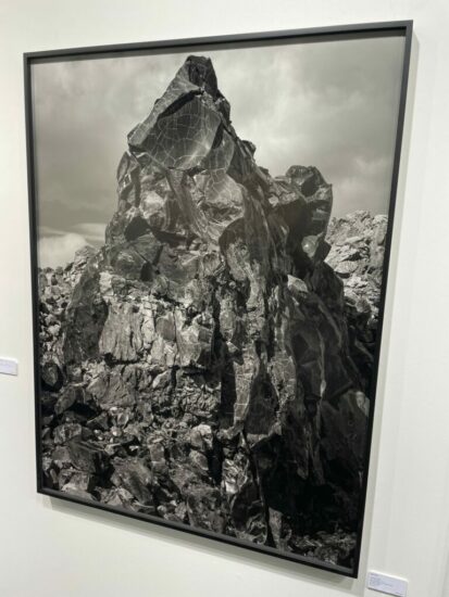 Gallery Luisotti (here): This towering pile of craggy, crackled obsidian was documented in 2023 by Ron Jude as part of his earlier series “12 Hz”. Seemingly molded and sculpted by unseen hands, its geological presence defies our current short term thinking, our eyes drawn to the immensity of its implacable textures. Priced at $10000.