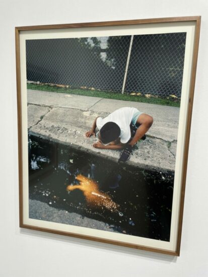 The Photographers’ Gallery (here): This booth was a solo presentation of Vasantha Yogananthan’s “Mystery Street” project, which is now on view in New York at the ICP. This image follows a young boy from New Orleans as he is engrossed by his findings in the street, the floating leaves and reflected light creating an entire world in the gutter. Priced at €6000.