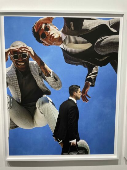 Dot Fiftyone Gallery (here): Anastasia Samoylova’s recent project/photobook “Image Cities” uses the large billboards and advertising wall coverings found in urban settings as a backdrop for complex compositional juxtaposition. Here a passing man in a suit seems to be playfully spied on by the two men above (all three of whom are wearing glasses and dapper outfits), the foreground and background brought into unlikely visual dialogue. Priced at $9000.