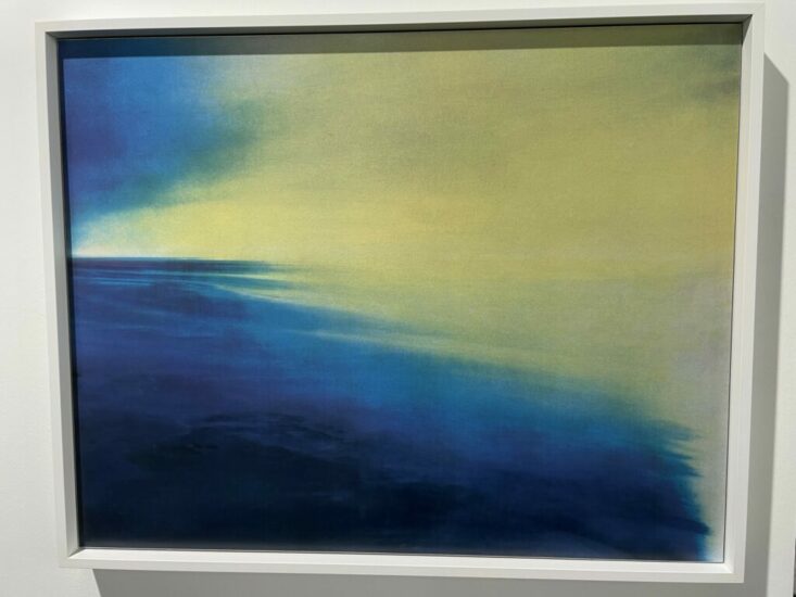Galerie Esther Woerdehoff (here): Not many contemporary photographers are interested in exploring the tactile qualities available in Fresson prints, but this 2023 work by Julien Mignot smartly leverages the strengths of the process. The work captures an eight hour exposure from a fixed seaside location in France, the seeping flare of the light slowly washing across the water. Priced at €3800.