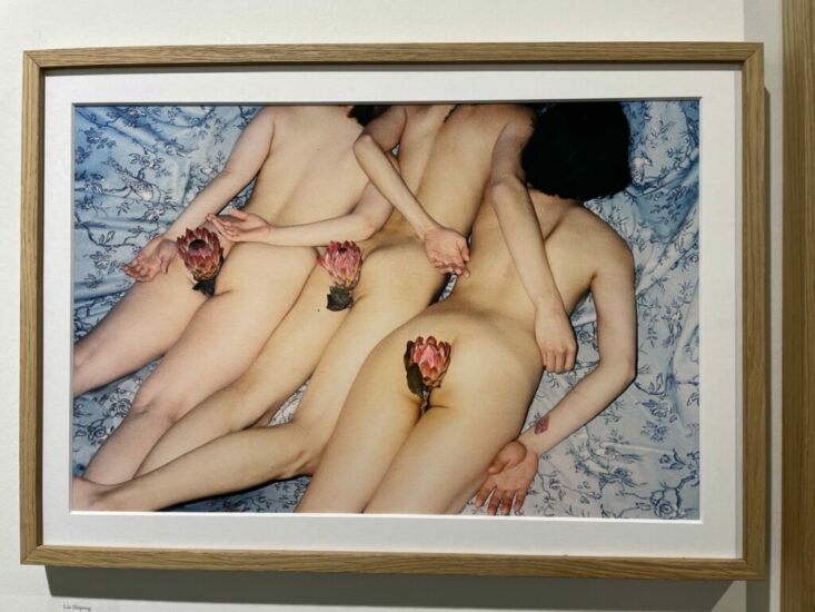 Stieglitz19 (here): Taken out of the context of the rest of the Chinese photographer Lin Zhipeng’s (No. 223) work, this playfully provocative three graces nude might seem too obviously mannered or staged. But when seen in relation to the larger body of work found in his 2019 photobook Flowers and Fruits (reviewed here), this image feels more intimately gentle, with the arms and legs creating lyrical formal echoes. Priced at $1900.