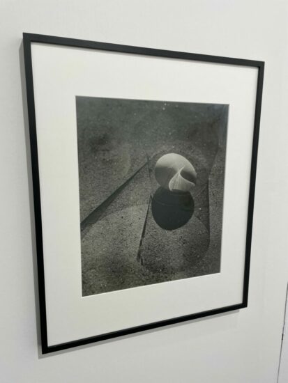 MEM (here): An egg, a curved scrap of transparent film, a textured ground, and some light are all that Osamu Shiihara needed to create this deceivingly complex 1930s era still life composition. The arced shadows and flares of light pleasingly confuse our sense of the visual reality, pulling layered geometries out of thin air. Priced at €11000.