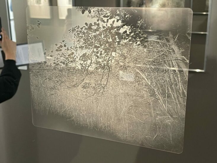Galerie Camera Obscura (here): Takashi Arai’s contemporary daguerreotypes have consistently considered the nuanced consequences of a nuclear world. In this 2022 work, he traveled to a remote Finnish nuclear waste site, documenting the unmarked forest that surrounds and obscures the long lasting dangers that lie within. Priced at €8000.