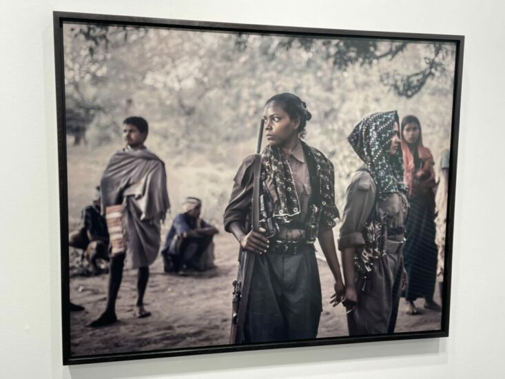 Jenkins Johnson Gallery (here): This image of female guerrillas in India comes from Poulomi Basu’s project Centralia, which took shape as a 2019 photobook (reviewed here). The wary determination on the woman’s face is what gives this photograph its enduring power, along with the tiny touch of the hands with another fighter. Priced at $7000.