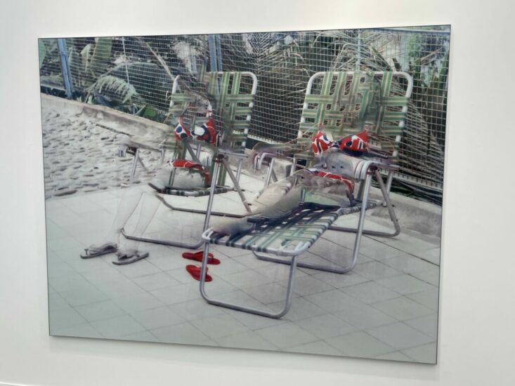 Anne-Laure Buffard (here): This confusingly surreal image comes from Nhu Xuan Hua’s series Tropism, Consequences of a Displaced Memory, which took form as a 2022 photobook (reviewed here). The Vietnamese photographer’s image wrestles with the contours of inherited memories, where family members and distant relatives hover in a kind of limbo. The project digitally erases the people from her family photographs, creating an altered reality filled with ghosts and empty connections. Priced at €16800.