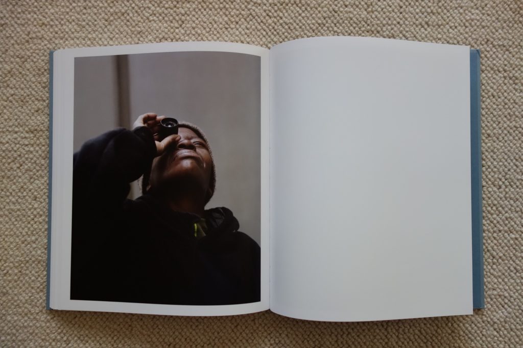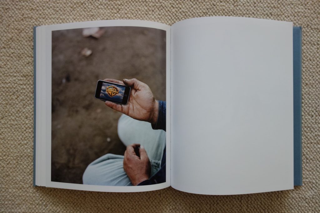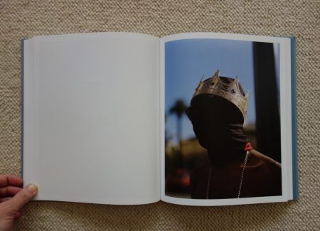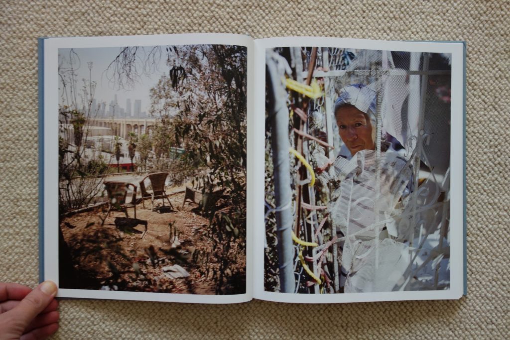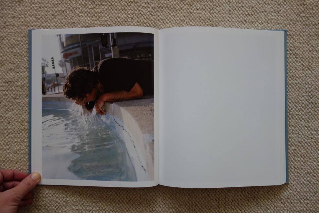 Halpern’s many excellent portraits are what give life and roundness to this story, but their consistently tender grimness adds up over the course of the book. Some of his subjects are obviously homeless, but nearly all seem down on their luck or otherwise living on the fringes. These are the same kind of people that have also inhabited Katy Grannan’s portraits of late – everyday fighters and survivors of all ages, genders, and ethnicities, who alternate between momentary swagger and more pervasive bone weary pessimism. Answers are looked for in many places – in a far off look, in crazed scribblings, in a telescope glance at the stars – but the irony of the grubby hand finding solace in a movie playing on a smartphone hits hard. This is a book that quietly undermines every glamorous aspect of Los Angeles, the jeweled crown bluntly revealed as cheap plastic.