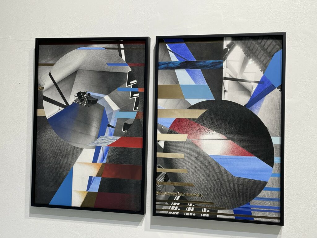 - 3 color pencil and collage on digital prints, 2018, 2023, sized roughly 5×4, 20×14 inches, unique