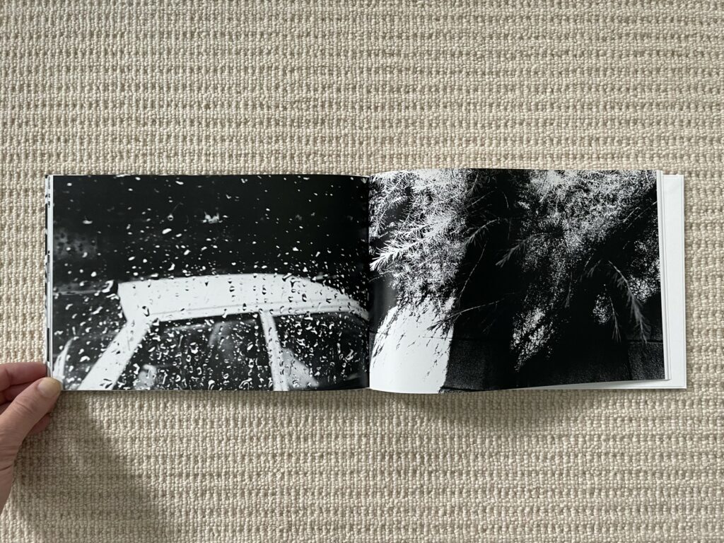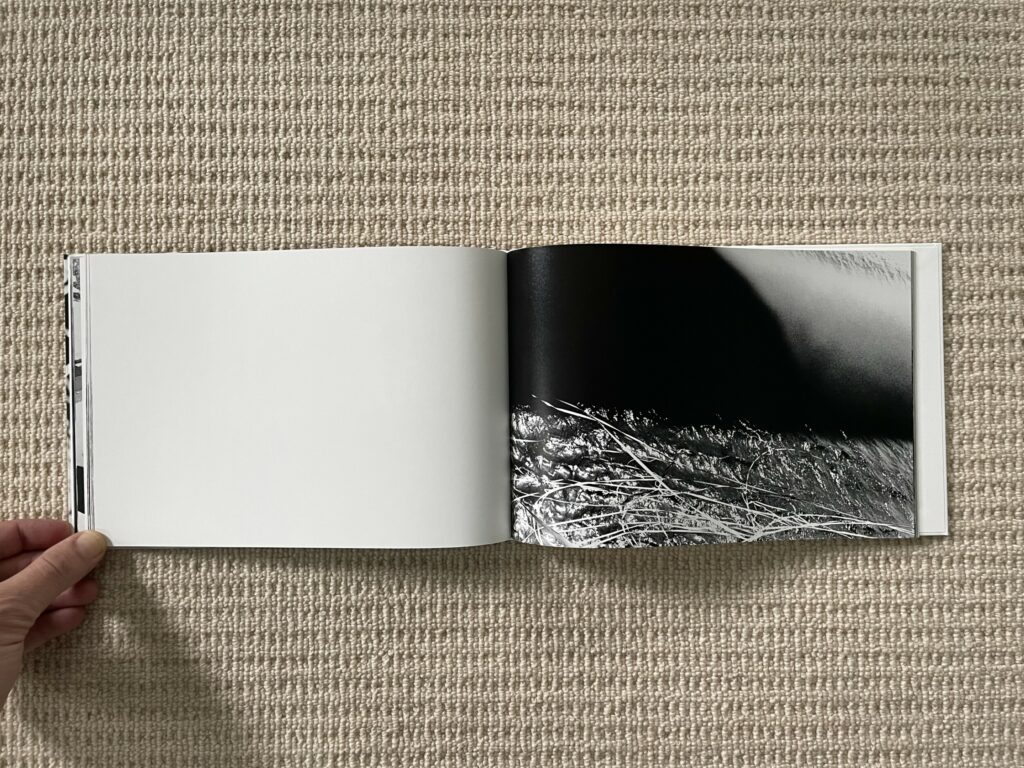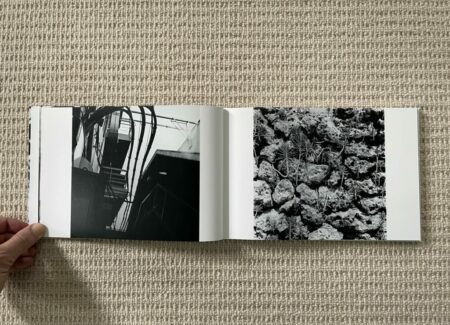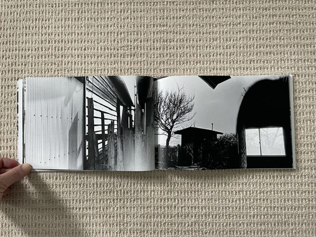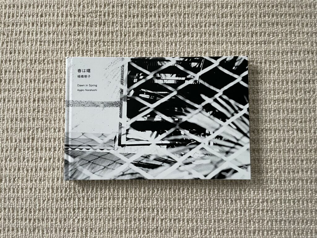 The design and construction of Dawn in Spring match well with an early body of work – the photobook is straightforward, small, unfussy, and largely unadorned. Most of Narahashi’s early pictures are landscape format, so these dominate the full bleed spreads; the few vertically oriented pictures are turned sideways to fit into the wide book setup (which pleasingly makes them even more confusing), and another few square format images are given white side borders so they can be placed on the wide pages. The only other notable design detail is that the thumbnails and text pages at the end of Dawn in Spring are printed on slightly thinner and glossier paper, subtly setting them apart from the main pages of photographs.
