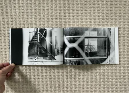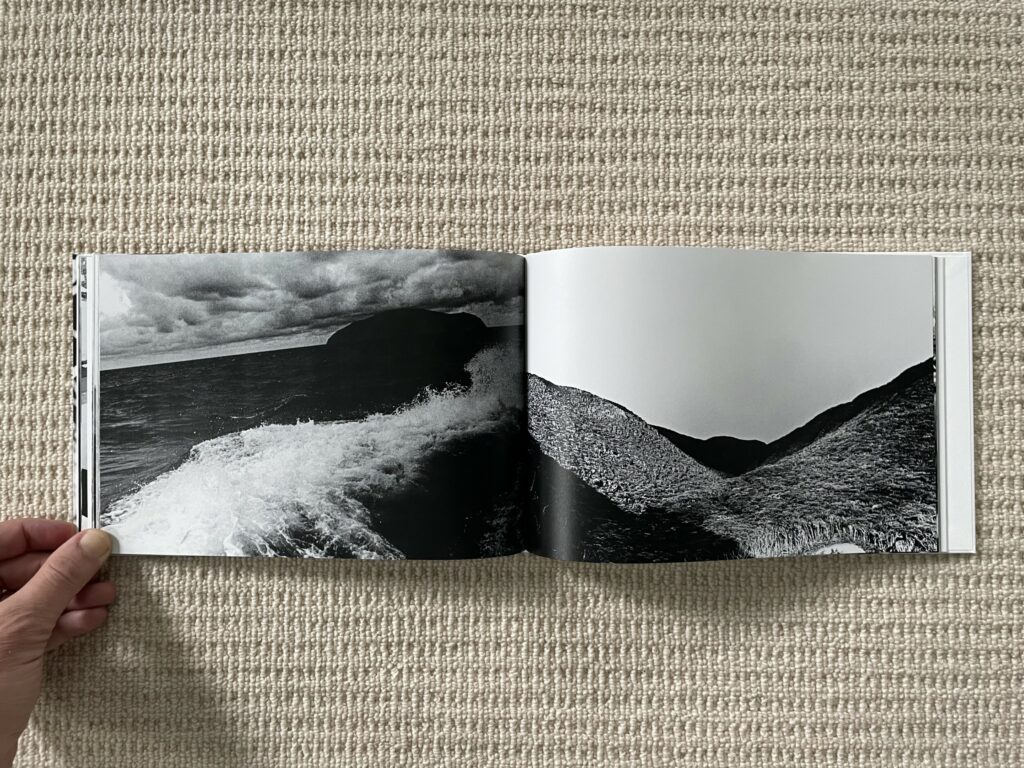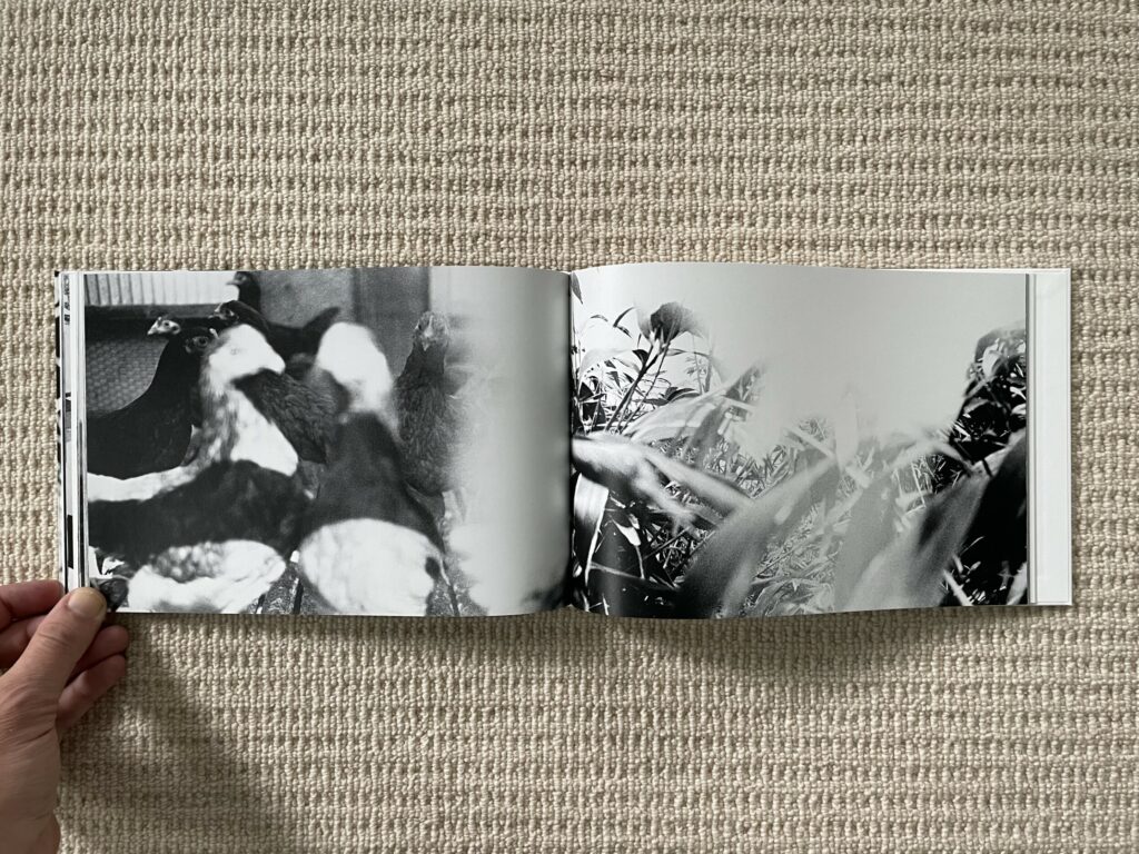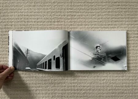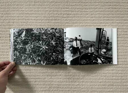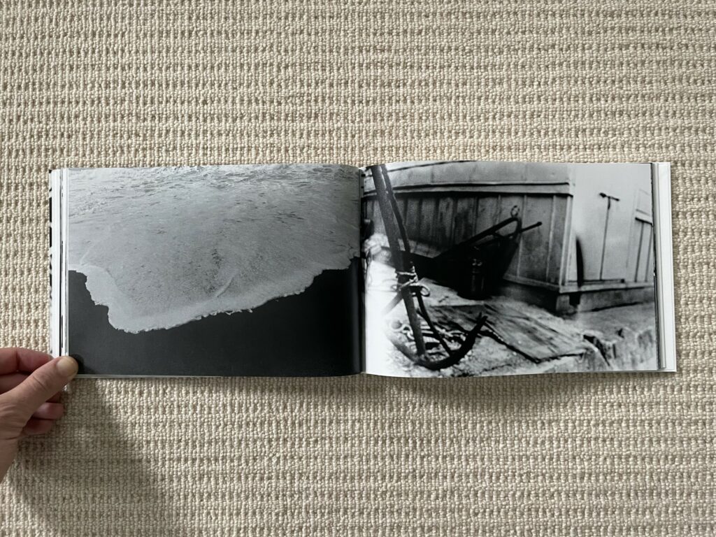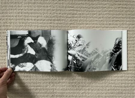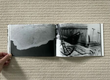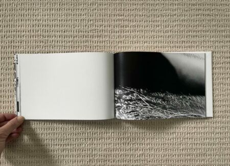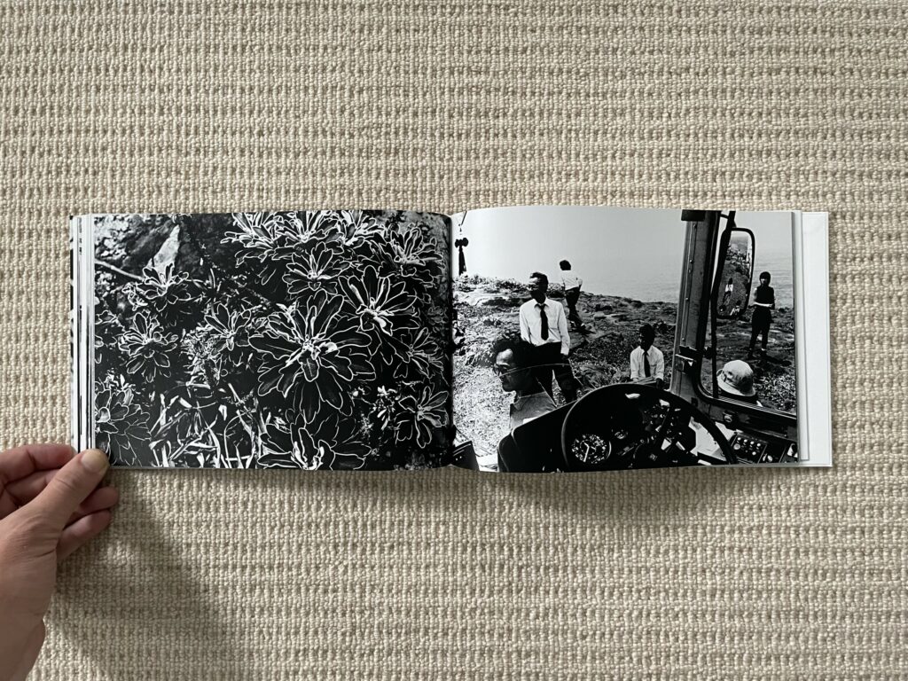 The design and construction of Dawn in Spring match well with an early body of work – the photobook is straightforward, small, unfussy, and largely unadorned. Most of Narahashi’s early pictures are landscape format, so these dominate the full bleed spreads; the few vertically oriented pictures are turned sideways to fit into the wide book setup (which pleasingly makes them even more confusing), and another few square format images are given white side borders so they can be placed on the wide pages. The only other notable design detail is that the thumbnails and text pages at the end of Dawn in Spring are printed on slightly thinner and glossier paper, subtly setting them apart from the main pages of photographs.