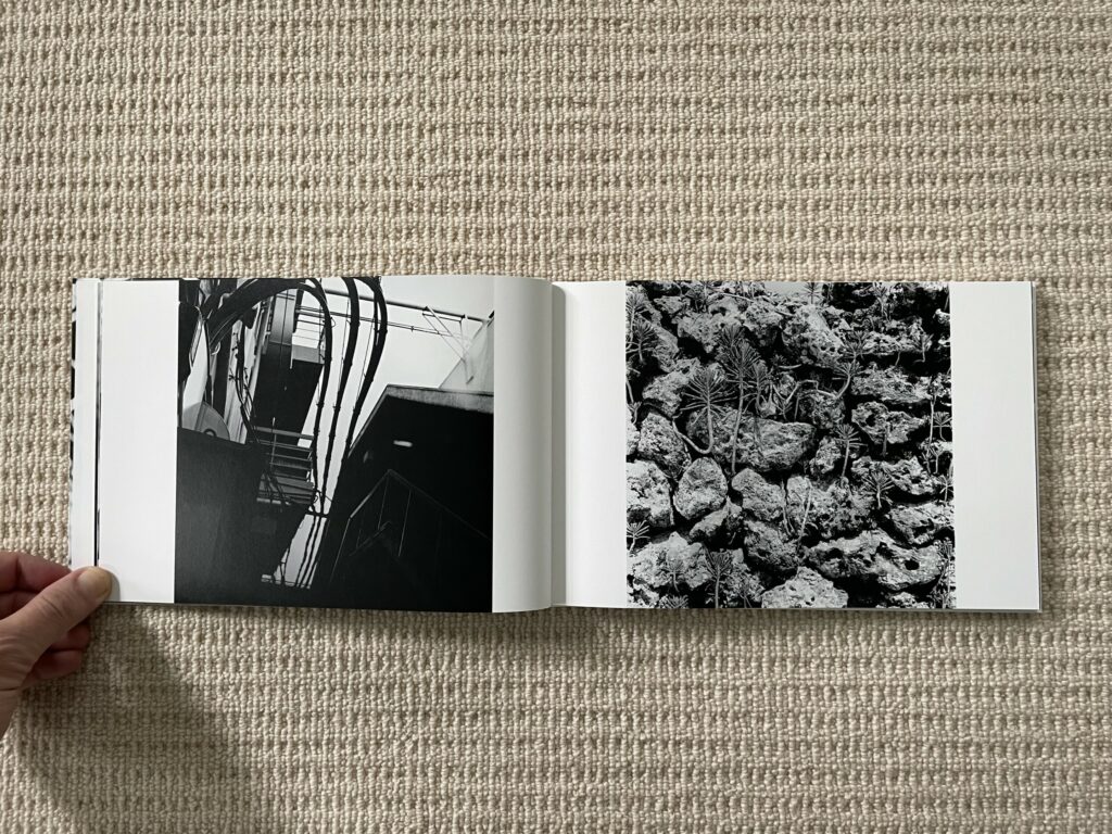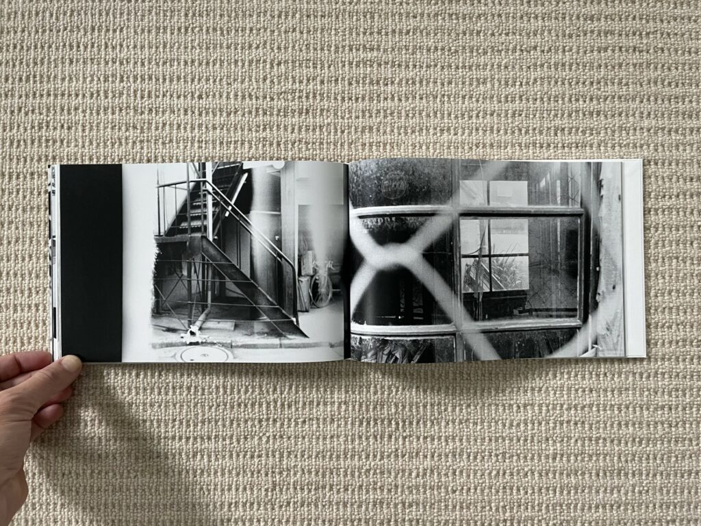 JTF (just the facts): Published in 2023 by Osiris (no book link on publisher site, available here). Hardcover, 173×257 mm, 120 pages, with 79 black-and-white reproductions. Includes a short statement by the artist (in Japanese/English), as well as a set of thumbnails (Japanese captions only). (Cover and spread shots below.)