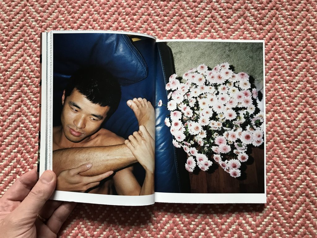 While many of the images do have an intimately playful appearance, a sustained look through Flowers and Fruits actually reveals a deep mood of melancholy. Again, I don’t think this a result of Lin trying too hard to be poetic – I think it is rooted in a genuine strain of quiet loneliness that runs through the lives of these people and has come out when they have been asked to pose. The flash-lit aesthetic says brash and confident, but what lies underneath that facade is often gentle and surprisingly elegant. A turn of an arm, the tenderness of an embrace or a kiss, a moment of rest and reflection, the curling up of legs, the scattered fall of loose hair – these are the observed details that make Lin’s photographs memorable and human. Then when the garish light is turned on showy blossoms, they feel exposed and exhausted, their petals and leaves blown out into tired decoration.