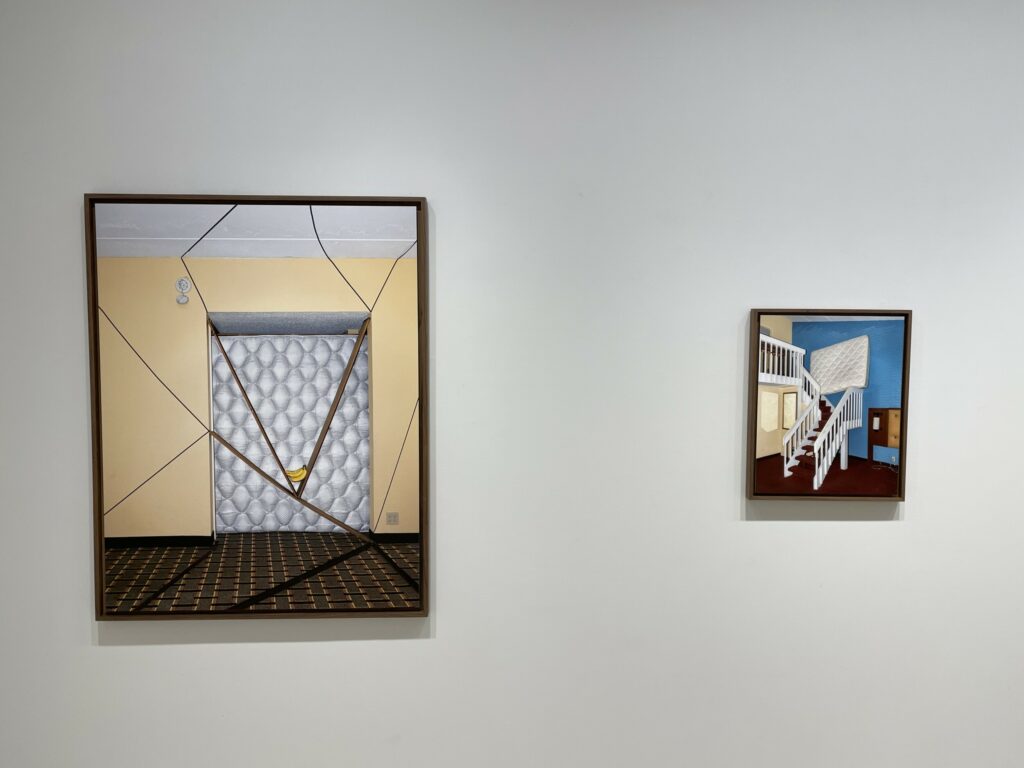Conceptually, Yudzon’s project fits into a number of potential artistic traditions. His hotel room installations could be considered physical interventions in the space, in the manner of Gordon Matta-Clark’s cuts and holes in architecture. His efforts could be seen as more performative or theatrical, like various Fluxus events. Or his sculptures could be seen as room-sized still lifes coming in a long line of improvised sculpture building (especially those with limited access to materials), finding connection to the works of Peter Fischli/David Weiss and Erwin Wurm, and more recently to those of Lorenzo Vitturi and Csilla Klenyánszki. And of course, if we step back from his interventions, Yudzon’s photographs can fall into line with countless others documenting the mundane charms of suburban American motel and hotel rooms.