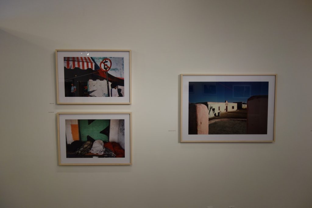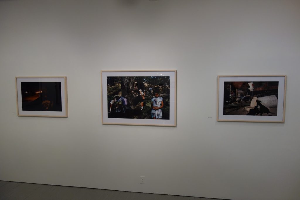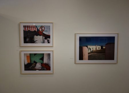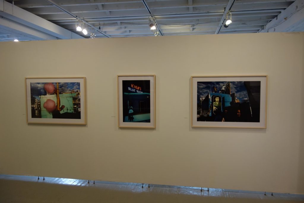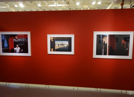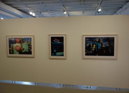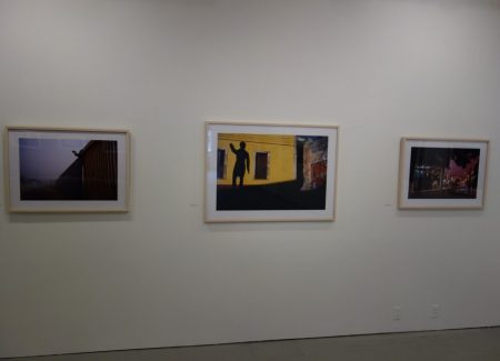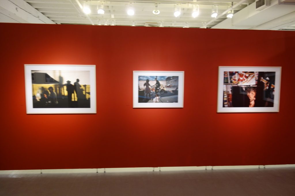 JTF (just the facts): A total of 45 black and white and color photographs, generally framed in white and unmatted, and hung against white, red, yellow, and blue walls in the main gallery space and the entry area. 44 of the works are digital c prints, made between 1979 and 2007. These prints are sized roughly 25×34 (in editions of 20) or 32×45 (in editions of 12). The single black and white work on view is a fiber print, made in 1978. It s sized 16×20 and available in an edition of 20. (Installation shots below.)