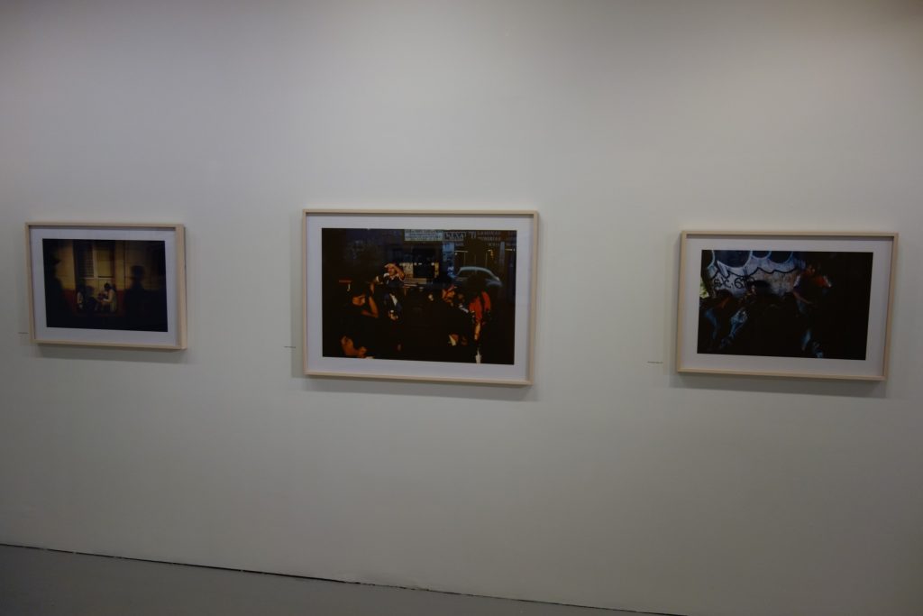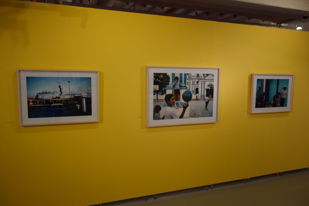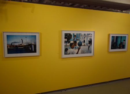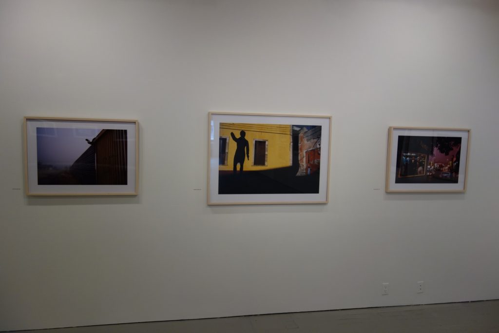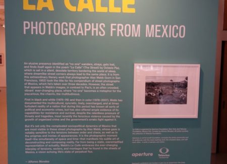 Starting with a single black and white image from the late 1970s and continuing through three subsequent decades of color work, the exhibit wanders the streets of cities across Mexico, and with only a handful of exceptions, all of the images are enlivened by the presence of people. Of course, there are busy storefronts and bars, street vendors and blurred passing traffic, border fences and dusty neighborhoods, each providing its own particular backdrop and cultural context. But its the vivid motion of people that seems to continually catch Webb’s eye – and it becomes the central tool he uses for organizing his pictures.