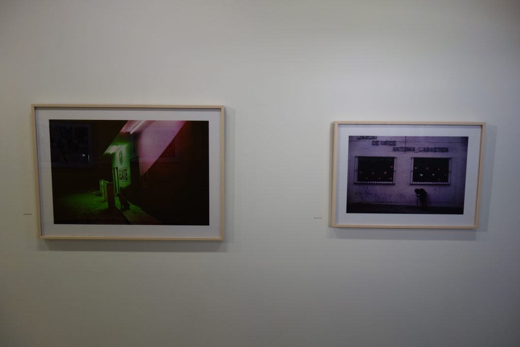 But even before we notice the careful alignment of various actors on Webb’s stage, we cannot help but be seduced by his vibrant colors. Perhaps it is the nature of the Mexican sunlight or a societal affection for bright decoration, but there is something truly glorious about the richness of the color seen here. Webb manages this color with the knowledge that too much saturation can be overpowering, and many of his best pictures deftly control the color, allowing it to spark here and there without dominating the images. The blue of the sky, a wall in yellow or orange or turquoise, a pink dress, a red awning, a white dog – nearly every picture is anchored by color that provides compositional weight, balance, or interest. Tints of color are equally powerful, especially at twilight or after dark, when fluorescent bulbs and neon signs bathes the scenes in soft purple, or melancholy blue, or a sickly creeping green.