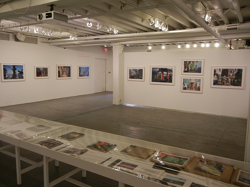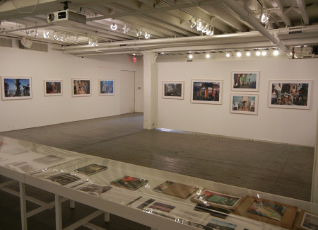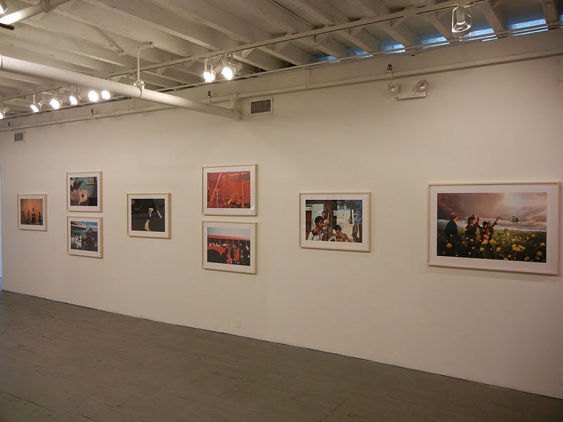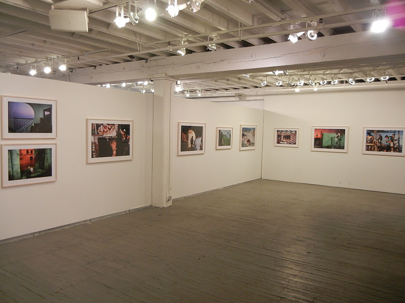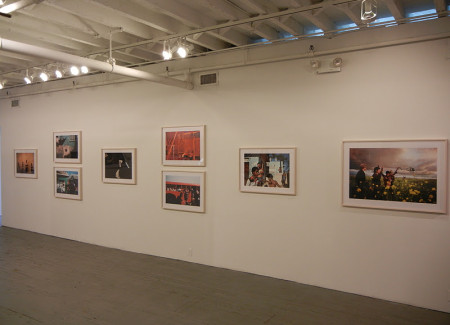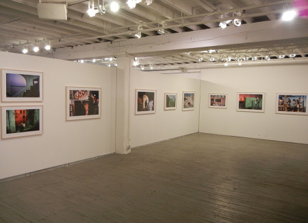 JTF (just the facts): A total of 52 color photographs, framed in blond wood and matted, and hung in the main gallery space. The digital c-prints come in two sizes: 20×30 (in editions of 20) and 30×40 (in editions of 12); there are 34 of the smaller size and 18 of the larger size on view. All of the images were taken between 1978 and 2010. The display also includes one long glass case containing seven of Webb’s monographs (both covers and spreads of each). A new monograph of this entire body of work was recently published by Aperture (here). (Installation shots at right.)