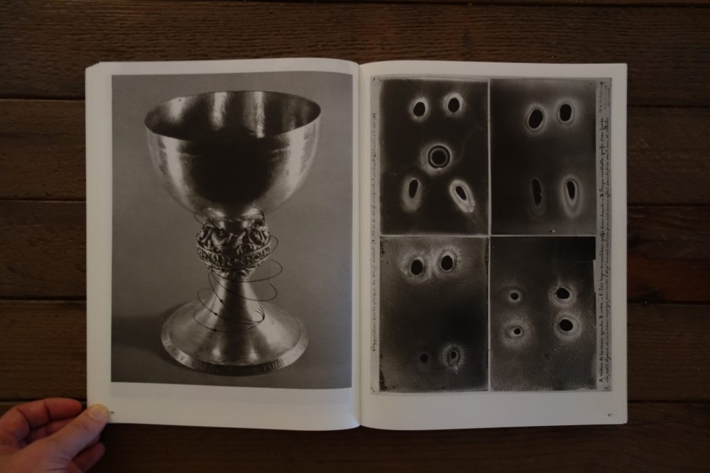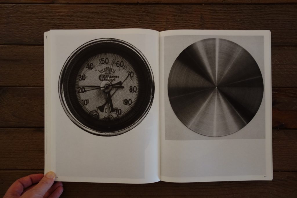 Suter’s photobook takes us on an extended journey through the world of radial things, each page flip offering us a new example inside the larger definitional framework. Open the book in one place and we can follow the breadcrumbs from petri dishes, to molecule diagrams, to insects, to electricity, to tree rings, to human heads, to stadiums, to car tires. Open it somewhere else and the path moves from world maps, to orange slices, to clock faces, to silver goblets, to marching ants, to gemstones, to eyeballs, to musical instruments. Move a chunk further and we get an umbrella, a camera lens, more microbes, a can of Sainsbury’s new potatoes, car headlights, a thermometer, a snake skin, a Volkswagen logo, and a Lego Millenium Falcon. And jump toward the end and out pop octagonal tables, motors, keyrings, twists of metal, modern looking chairs, robot toys, insulated power cable diagrams, and a Claes Oldenburg soft lightswitch.