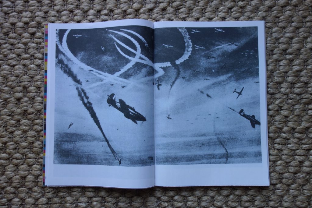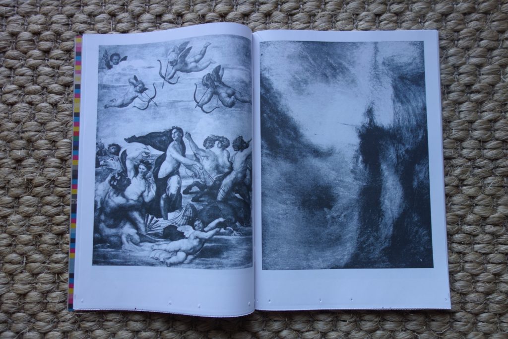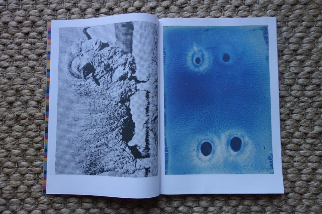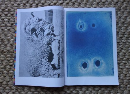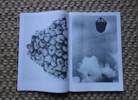 The photobook Cloud Service was published by Printed Matter (here)/Roma Publications (here) in conjunction with the exhibition. Staple-bound paperback on newsprint paper, 104 pages, with 96 color/black and white images. There are no texts of essays included, aside from an index of sources. In an edition of 1200 copies. Design by Batia Suter and Roger Willems. (Cover and spread shots below.)