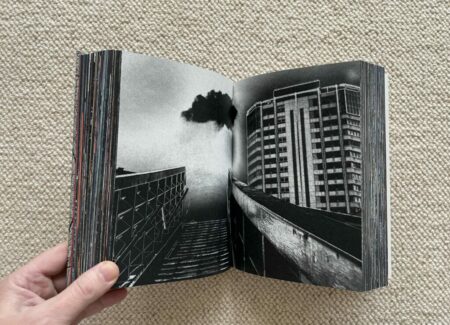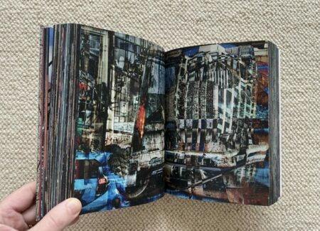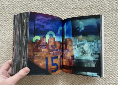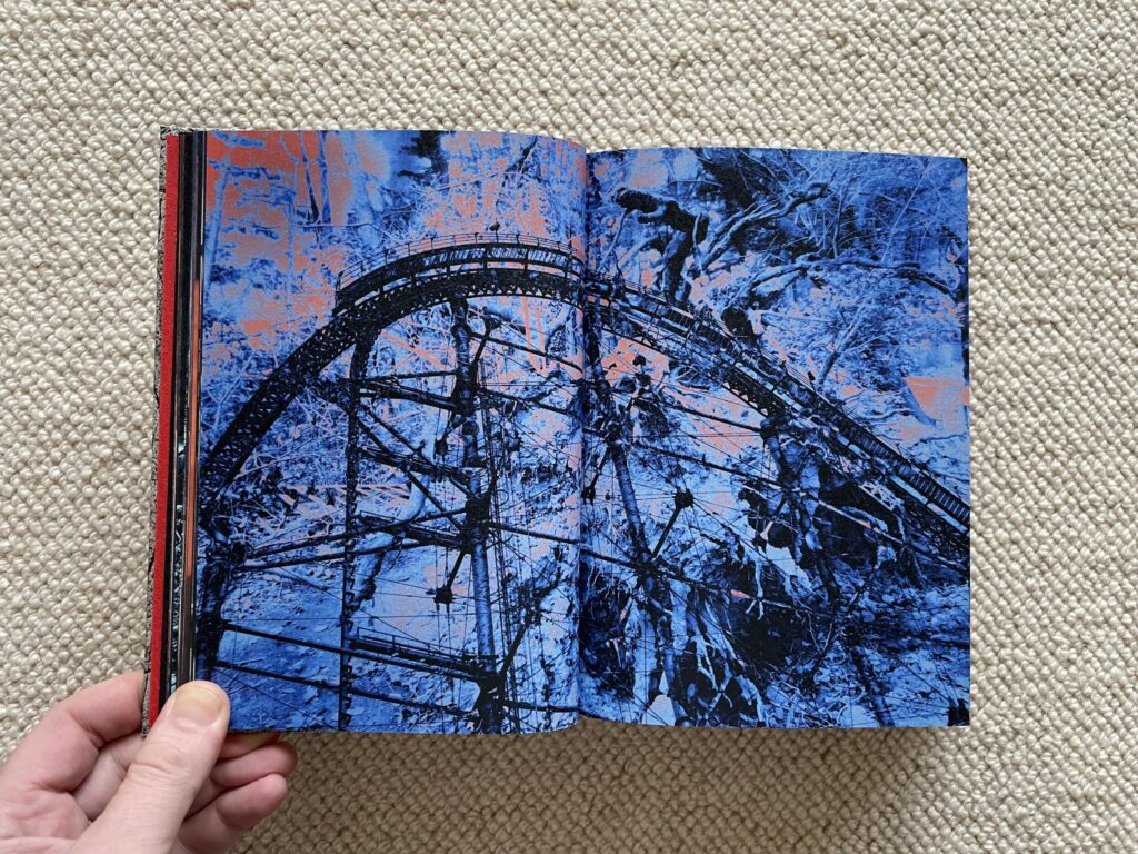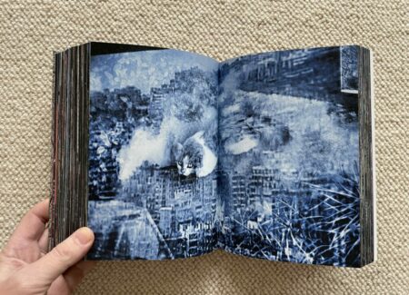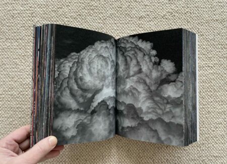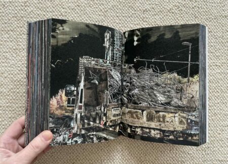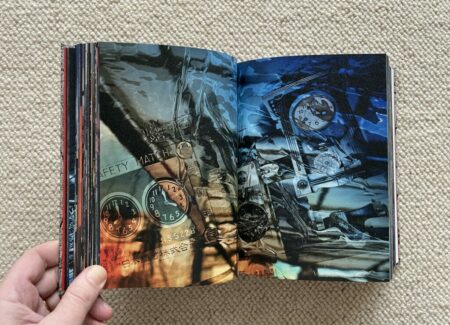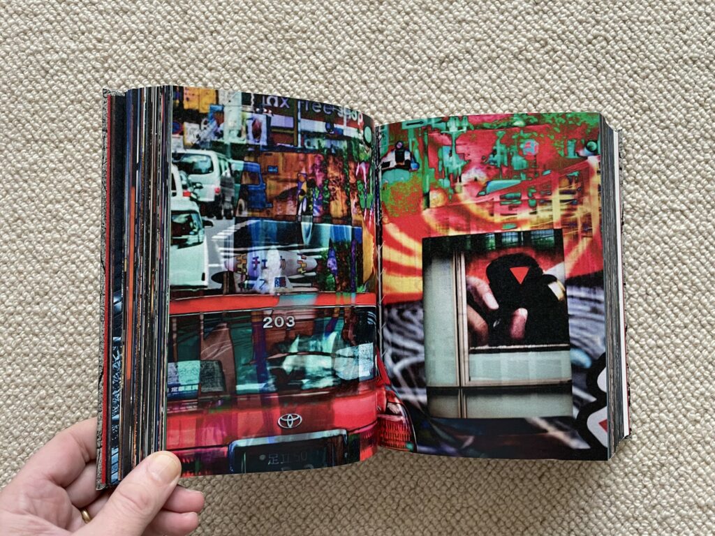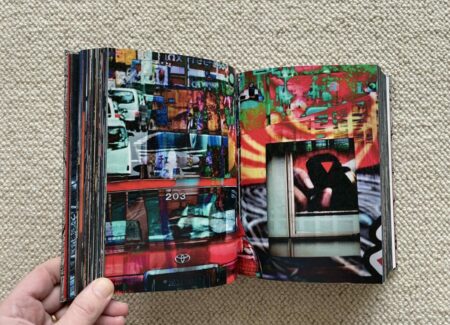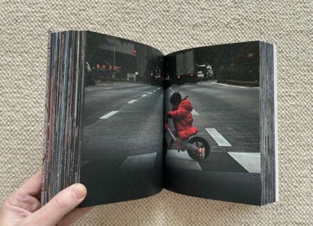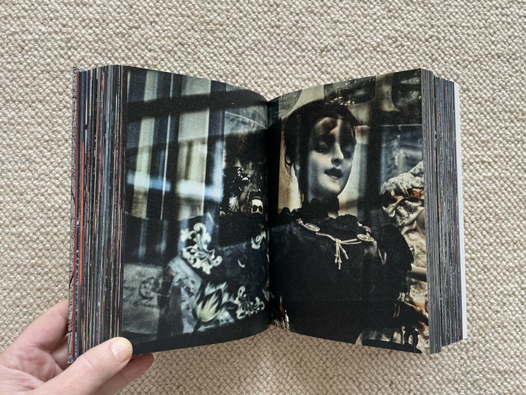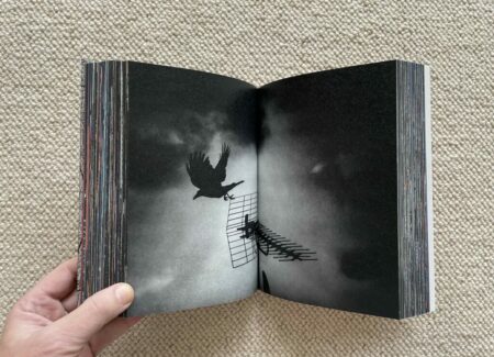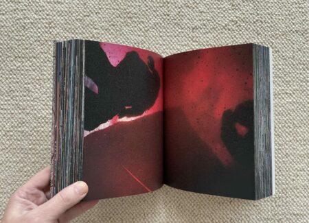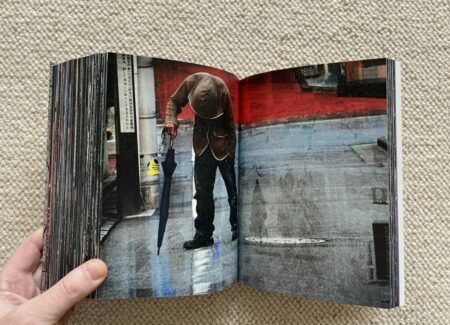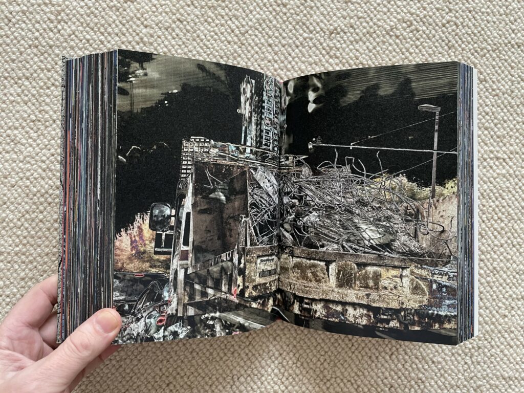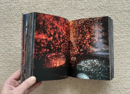 At nearly three inches thick, Vortex is a brick (or a doorstop) of a photobook – intimately sized, but unexpectedly hefty. But its unconventional form does deliver a vague facsimile of the endless, time-independent Instagram scroll where the images first appeared, in that the pictures are all printed full bleed, often in bright saturated colors, and we are asked to page through them, over and over and over, until we get about half way through and think we are near the end, but actually aren’t anywhere close to finished. As an experience, looking at Vortex mimics a sprawling stream of consciousness, with echoes and refrains of subject matter and aesthetics appearing and reappearing, knitting the visuals into a well-integrated whole that ultimately stands as a forceful artistic statement.