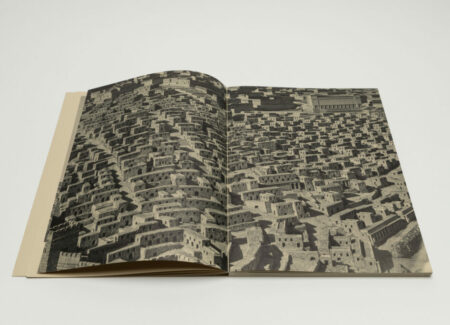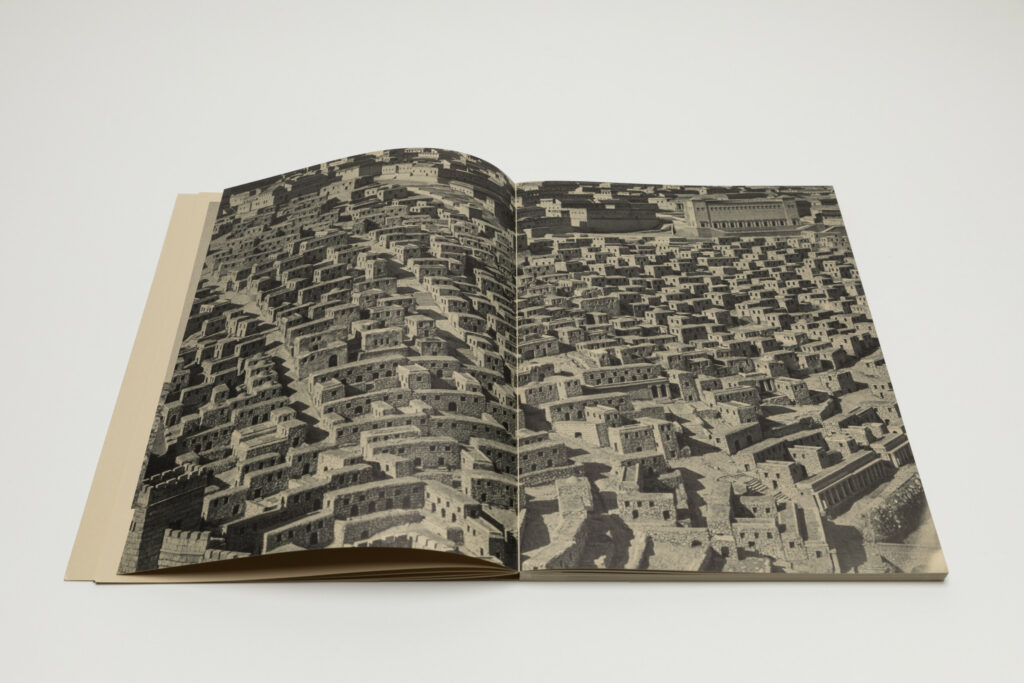 One of the first photographs depicts a nude female dancer posing in the desert. It is followed by a striking full spread image of a city photographed from the above, and it takes a moment to realize that this is actually a scale model of Jerusalem at the end of the Second Temple period. Landscape, time, history, and the present all come together on the pages of Heat of Sand.