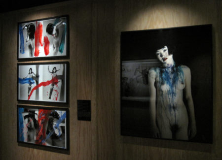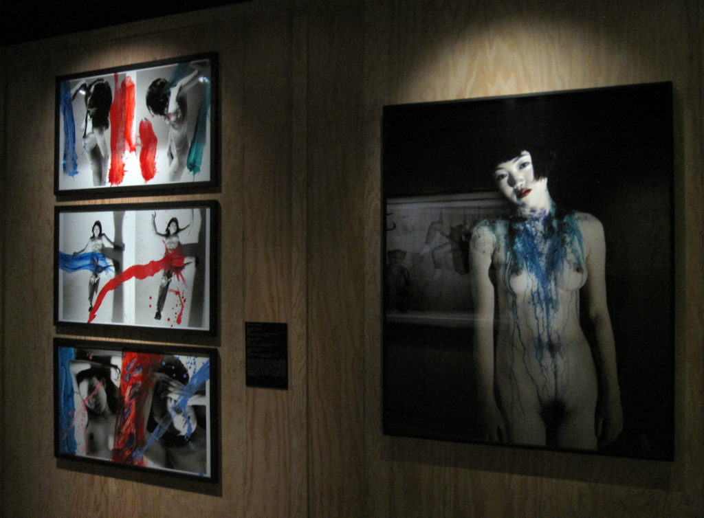 One text points to a woman’s allegations, made last August on Facebook, that Araki behaved inappropriately with her on a commercial shoot when she was 19. Since the opening of the show, a model known as KaoRi—who appears here in a series of black-and-white photographs spattered with blue and red paint—has accused Araki of financial and artistic (though not sexual) exploitation. At her request, the exhibition’s wall text no longer refers to her as Araki’s lover.