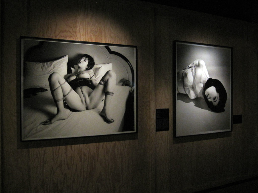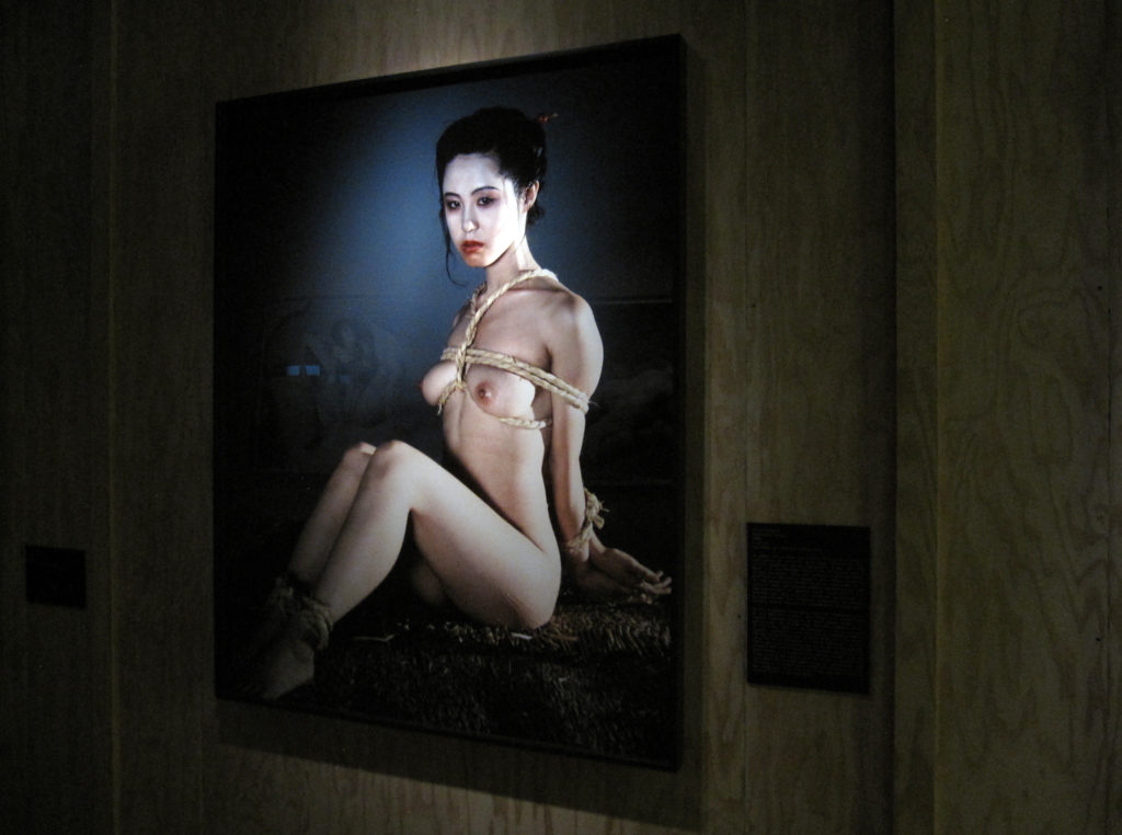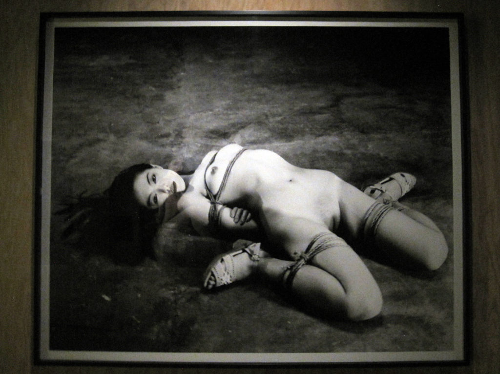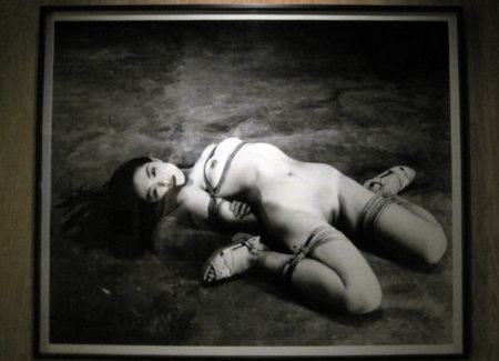 The Museum of Sex tackles these and other thorny questions in this excellent survey of the work of controversial Japanese photographer Nobuyoshi Araki, who usually refers to himself by his surname only. Araki is best known for blurring the line between erotic art and pornography, most famously in photographs of nude or partially nude young women in intricately knotted rope restraints. (He is a master of the Japanese style of rope play known as kinbaku-bi, or “the beauty of tight binding.”)