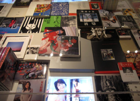 Running down the middle of the gallery, an enormous vitrine containing hundreds of the more than 500 photo books made by Araki over the course of his career suggests that this may be his most generative medium. The books include such famed titles as Sentimental Journey/Winter Journey (1991), which combines photographs from “Sentimental Journey” with documentation of Araki and Yoko’s final years together ; Tokyo Love (1995), a collaboration with American photographer Nan Goldin; Tokyo Radiation (2010), Araki’s visual account of his radiation therapy following a diagnosis of prostate cancer; and many, many collections of photographs of Japanese housewives, who apply to him to be photographed in the nude.