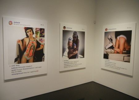 Prince’s insertion of language also provides a method for him to hijack the implied visual narrative. While the selfie may have been taken or posted for one reason (a sexy look, a sassy come on, a swaggering cool), Prince has provided his own alternate interpretation, effectively turning the camera back on himself – it is his offbeat reaction that we’re watching, more so than the original image. He then pushes this invasion of personal space further by treading into a creepy stalker mode, selecting scantily clad young women and testing our appetite for leering lecherousness. Once again he’s digging into the cultural underbelly of the current moment, this time using the stereotypical troll personality of the Internet as a destabilizing agent.