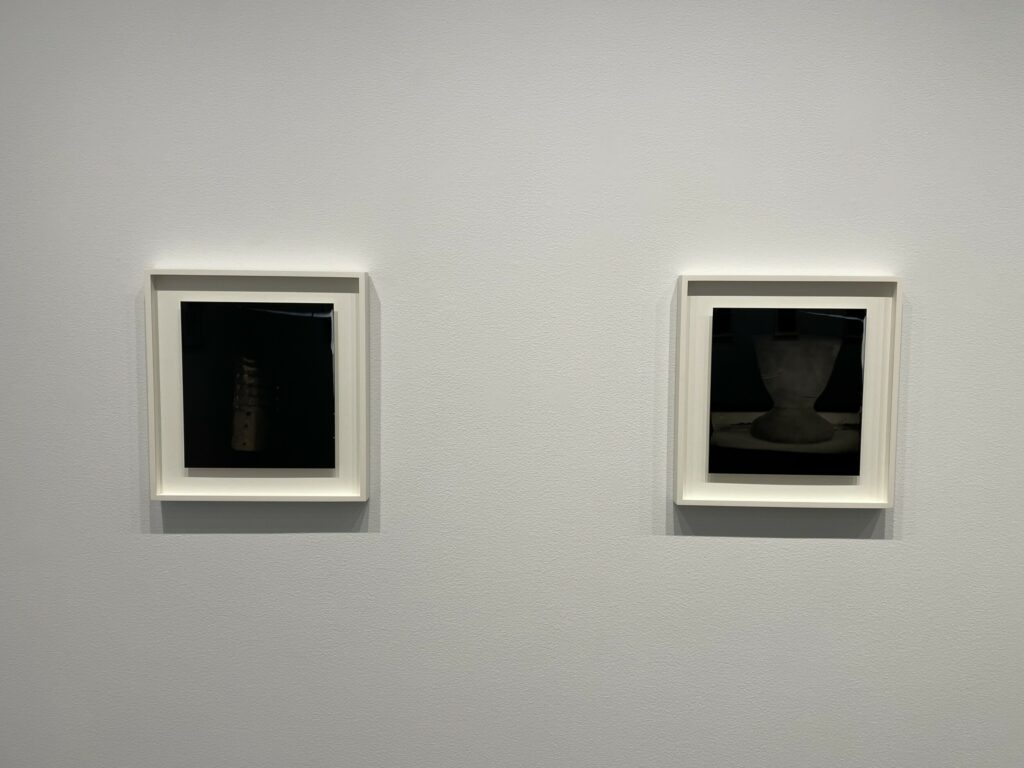 When the works of these two artists are interleaved together as they are here, the affinities between their artistic worldviews become readily visible. The links between still life setups, monochrome palettes, elemental geometries, and textural richness emerge first, setting up easy back-and-forth comparisons. I found myself wanting to temporarily apply one artist’s approach to the works of the other – what would de Waal’s arrangements look like if seen in gradations of lush moody shadow and flattened (and cropped) by the eye of the camera? And what would Mann’s setups feel like in three dimensions, where the dynamism of movement and shifting light could activate the objects and create extended experiences instead of single instants? Both artists’s work ultimately felt more complex and layered because of this dialogue, the combined narrative embellished by the interplay of photographic and sculptural seeing.