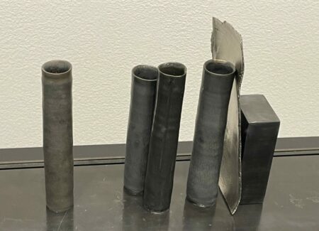 - 5 porcelain, silver, aluminum, and glass, 2023, sized roughly 15x20x4 inches, unique