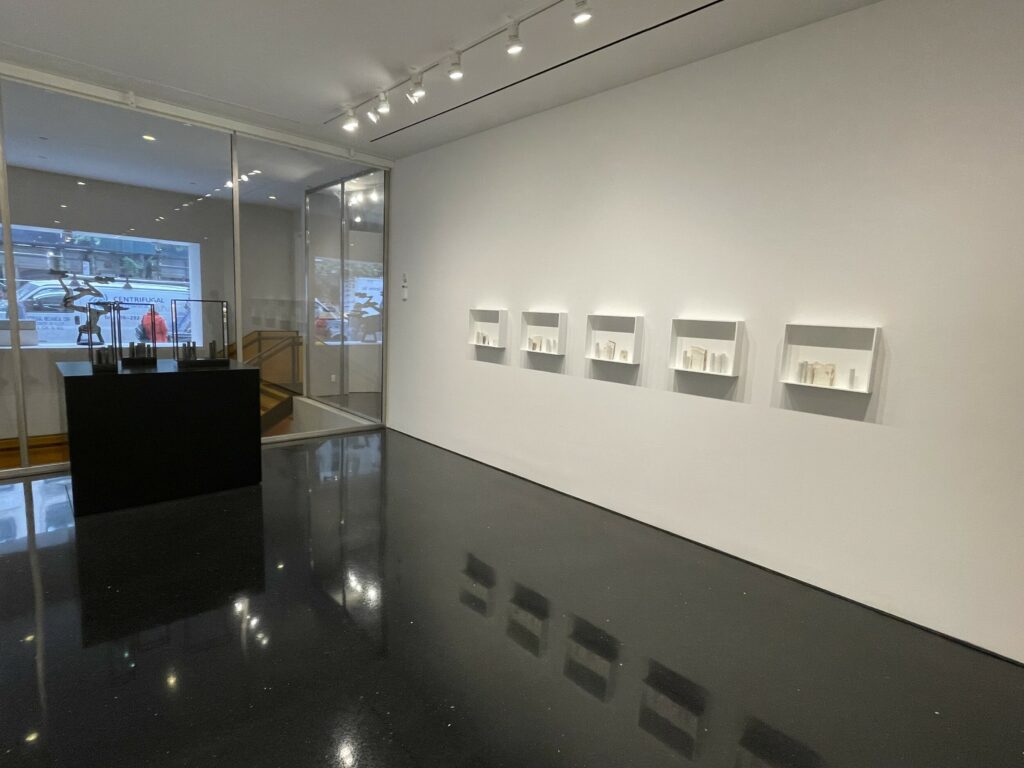 JTF (just the facts): A paired show between the two artists, on view in the two room gallery space behind the bookstore. (Installation shots below.)