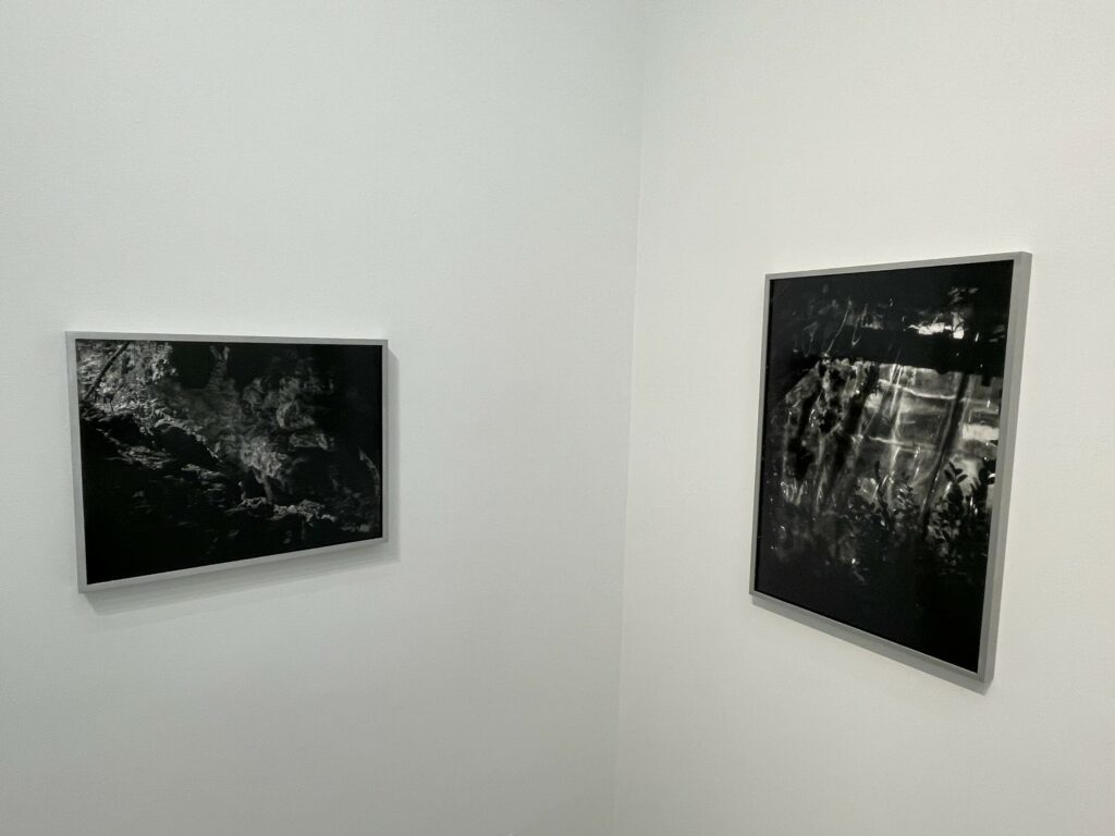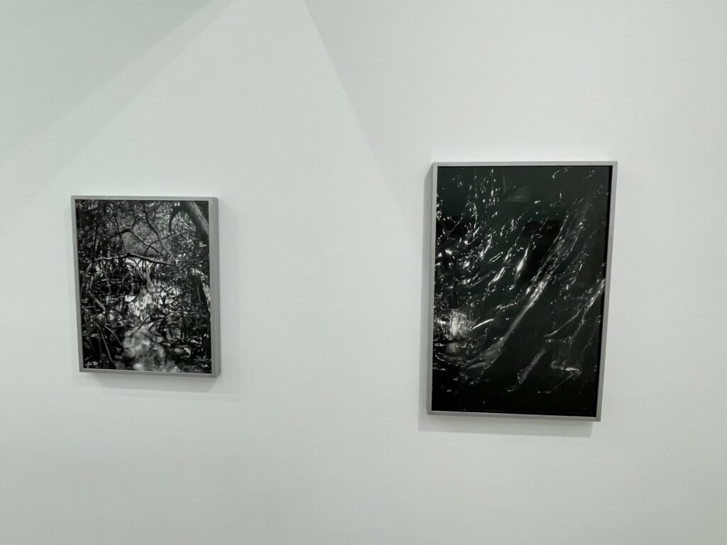 A second group of photographs dives deeper into the swamplands, where the roots of the mangrove trees meet the still water and the lush undergrowth dapples the light. Pérez controls the interplay of light and dark in these shadowy areas with suppleness, transforming the lines of the roots into thick gestural marks which then cast shadows that densely mottle nearby natural surfaces, to the point of near abstraction. They apply a similar aesthetic in an image of a textural cave wall, the craggy darkness seeming to dissolve into approximation.