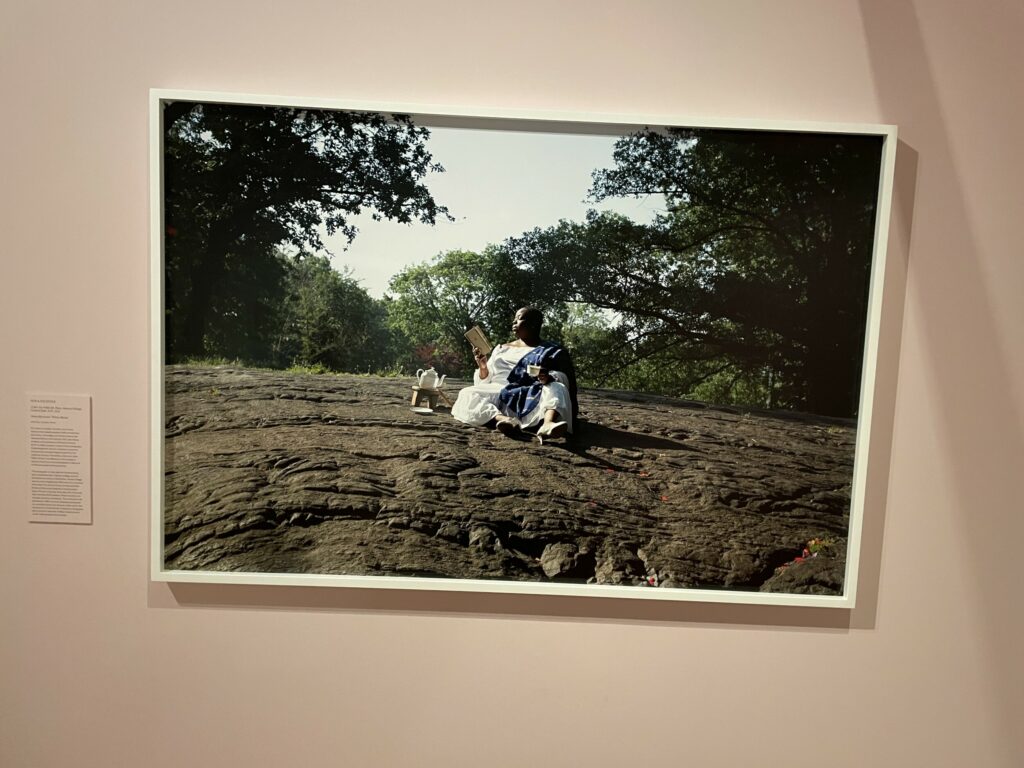 Three other artists also examine the idea of place, albeit from slightly more indirect and time-shifted angles. Irina Rozovsky’s lush images made in Prospect Park in Brooklyn capture a wide variety of New Yorkers finding moments of peace, tranquility, and relaxation in the park, mixing the natural beauty of the spot with differing uses of and engagements with that place by various residents and communities. Nona Faustine and Alan Michelson take a more historical perspective, reclaiming the former site of Seneca Village in Central Park with a modern day afternoon tea, and examining the current industrialized state of the Newtown Creek between Brooklyn and Queens, a former natural shoreline living ground for the indigenous Lenape people. In these last two works, invisible displaced subjects intermingle with current realities, the tension still very much in the air.