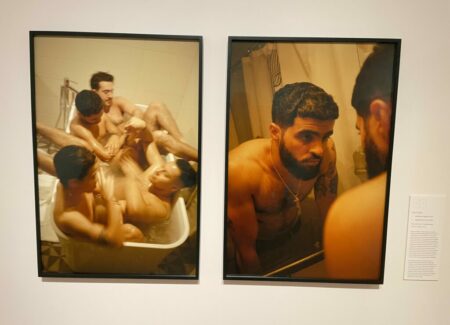 A large group of artists in this show don’t necessarily root themselves in a particular New York place, but find their sense of home within a cultural community, either of recent immigrants from a specific country or within a subculture of Americans and hyphenated-Americans who continue to identify with life in another geography and weave that vantage point into their New York experience. Cinthia Santos-Briones tells the story of Amanda and her three children, who fled from conflict in Guatemala and have taken refuge in a church in Washington Heights, where they make a life inside the building while resisting the deportation efforts of the US government. Xyza Cruz Bacani sensitively documents the singular moments of a Filipina survivor of labor trafficking, now married and building a life with her Bengali husband in Queens, the cultural mixing taking shape everywhere from the front lawn to the dining room. And various other artists struggle to incorporate expectations and traditions from afar into their lives here, including Cheryl Mukherji and her Indian arranged marriage heritage, Alan Chin and the power of his Chinese family album, and Dean Majd and the intimate friendships of Palestinian men.