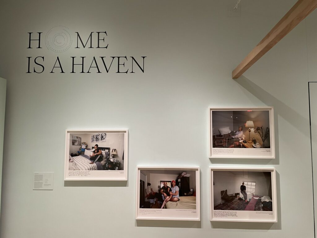 (main gallery in loose sections titled “Home is a Haven”, “Home is the Body”, “Home Crosses Borders”, and “Home is Chosen”)