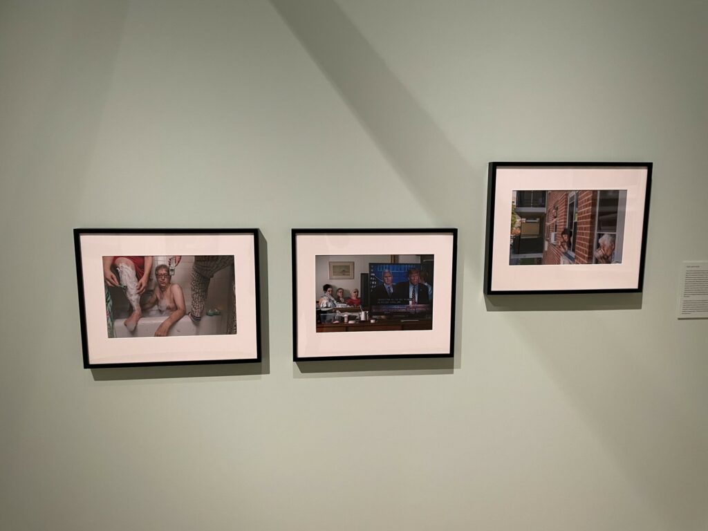 Of course, New York City is not only divided up into five boroughs, but within those boroughs are countless neighborhoods, micro-neighborhoods, districts, and enclaves that have unique characteristics and personalities. So it’s not surprising that several of the photographic projects on view here look closely at city life in a very specific location, documenting both who lives there and how they make that place their own. Paul Moakley captures the celebrations of prom parties, 4th of July parades, and SantaCon breakfast pregaming in Staten Island. In Queens, Maureen Drennan gets inside the daily rhythms of the working class island community of Broad Channel in Jamaica Bay (including an egret in a living room), while Elias Williams sensitively digs into the lives of Black residents in St. Albans, who have faced the aftereffects of a local housing crisis. Roy Baizan focuses his attention on the Black and Latinx families in Mott Haven in the South Bronx (with a particularly strong group portrait of fathers and young daughters), and Ian Reid has made first-person video footage of the conditions inside the Farragut Houses and other affordable housing developments in Brooklyn. In each case, we get a succinct, personal view into a living situation in New York that we might not have experienced ourselves.