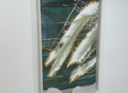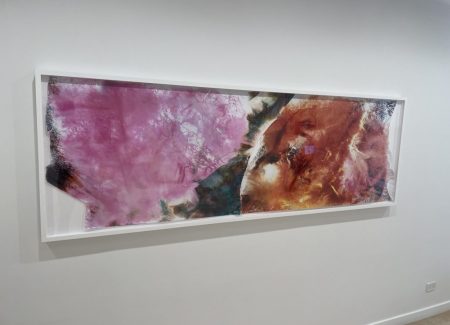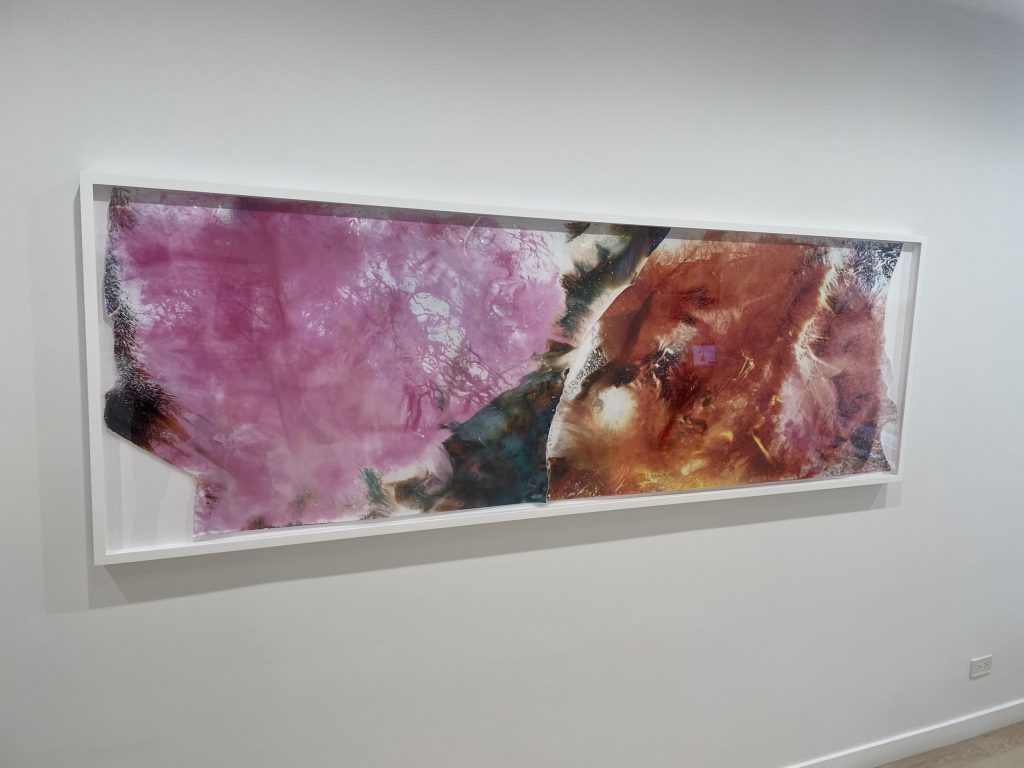JTF (just the facts): A total of 7 color works, framed in white/black and unmatted, and hung against white walls in the main gallery space, the elevator entry, and the office area on the third floor. All of the works are chemical treatment on RA-4 paper, made in 2014, 2014/2021, or 2015/2022. Physical sizes range from roughly 24×23 to 92×30 inches (or the reverse) and all the works are unique.