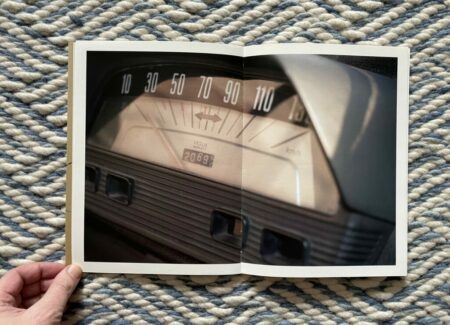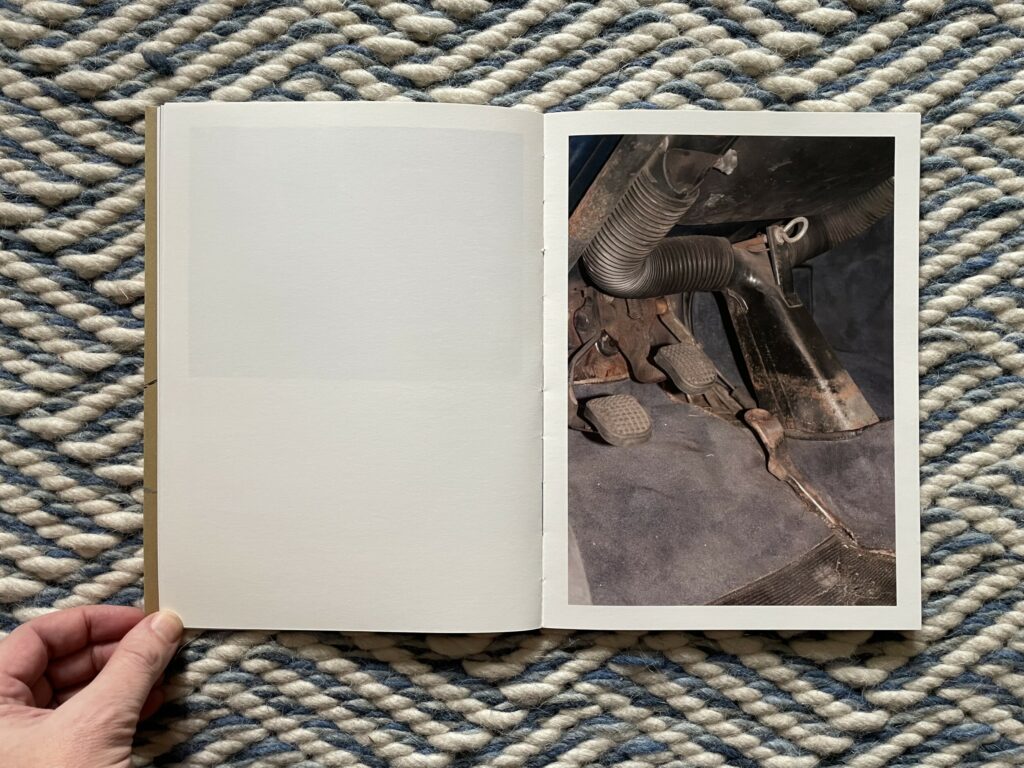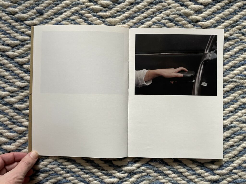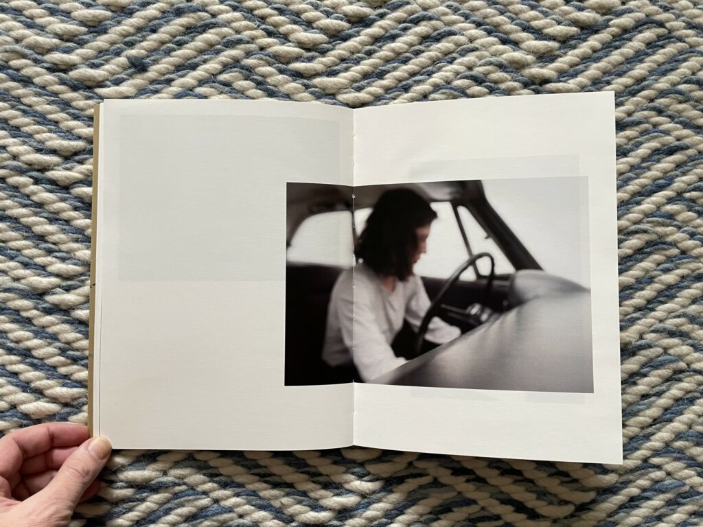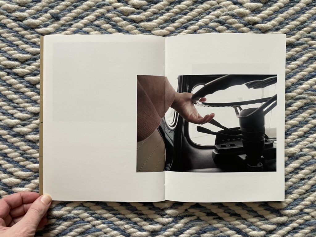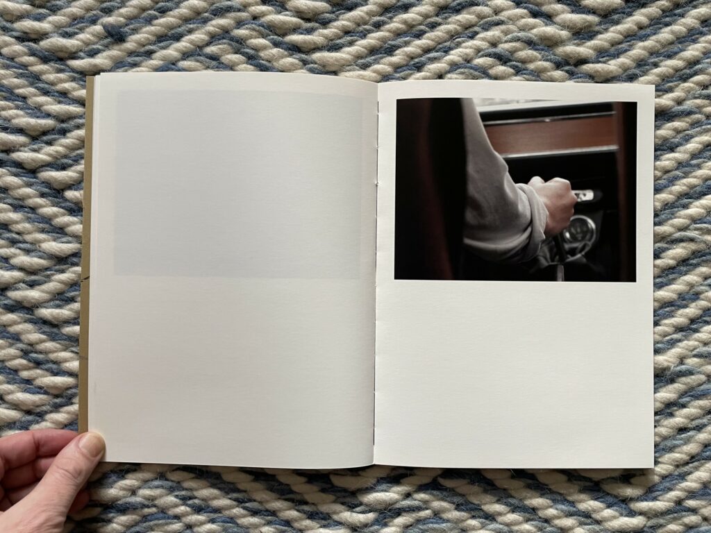 What I like about this photobook is its comfortable return to the first principles of photography – of using a camera to look at something (however mundane) and therefore seeing it “photographically”. There is a sense of unexpected richness and presence in Moschou’s pictures of this car and driver, the kind that draws us into potential narratives and imagined situations and encourages us to observe the details even more closely as if looking for clues. It’s as if through sheer dogged attentiveness, she has rediscovered the magic to be found in learning to drive a car, while also highlighting the unlikely aesthetic beauty found in pulling back a dusty car cover or buckling a seat belt. How to drive is set in the disarmingly simple framework of an instruction manual, but is somehow also beguiling, visually answering obvious questions while still leaving plenty of room for nuance and open-ended interpretation.