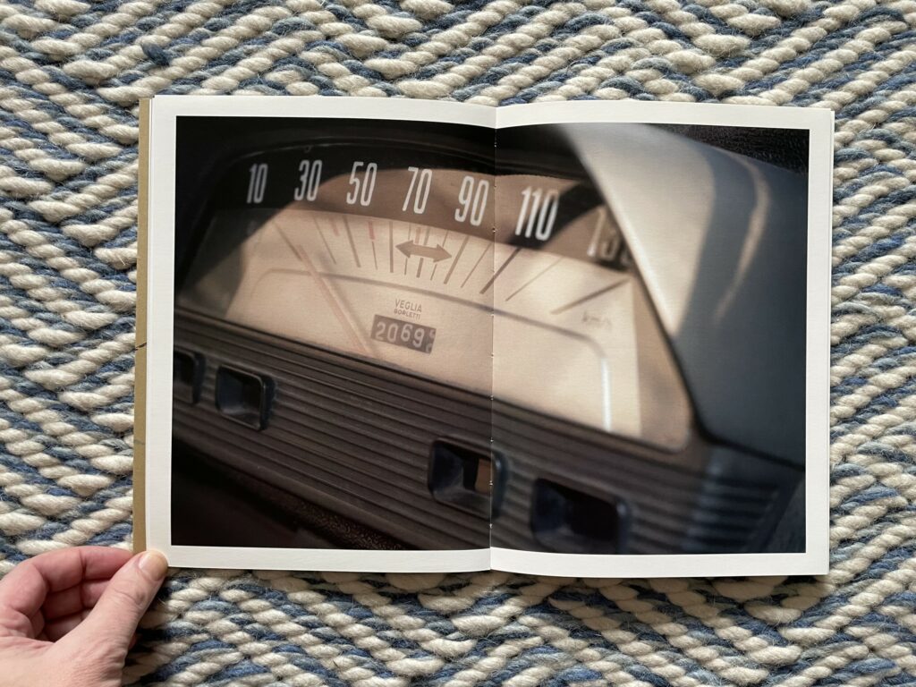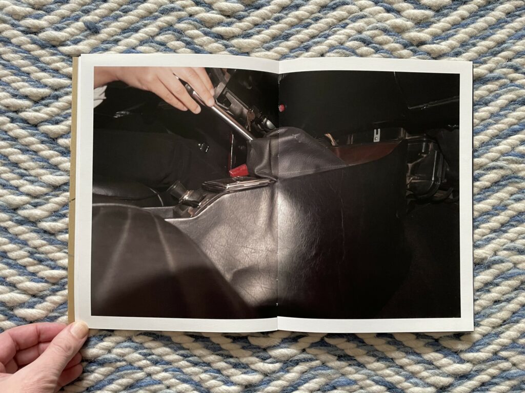 Against this backdrop of subtle artistic mockery, Katerina Moschou’s How to drive feels altogether different, mixing a sense of understated reverence and affection with a seemingly genuine effort to see something familiar with fresh eyes. Moschou’s father is apparently a car mechanic, whose passion lies in vintage Italian cars and their hard to find mechanical parts, and Moschou grew up in Athens steeped in that automobile subculture. Her photobook steps back to look closely at a world she already intuitively knows, examining a single vintage car with care and attention and gathering together images she staged of how to operate it. Her photographs reference some of the mundane practicality of typical how-to imagery, but infuse the subject matter with an unexpected strain of tactile mystery and compositional complexity.