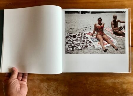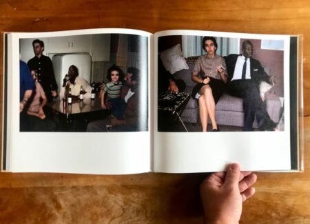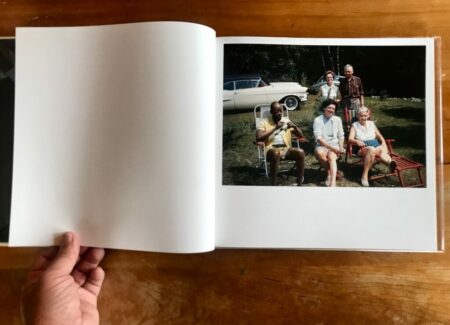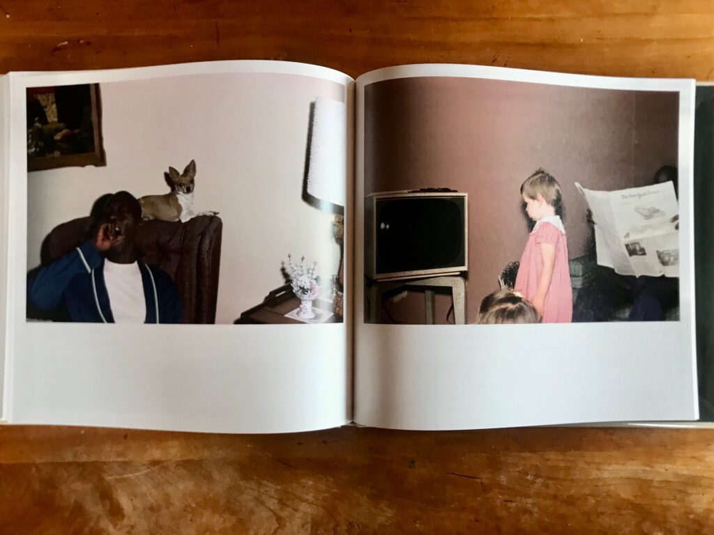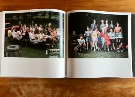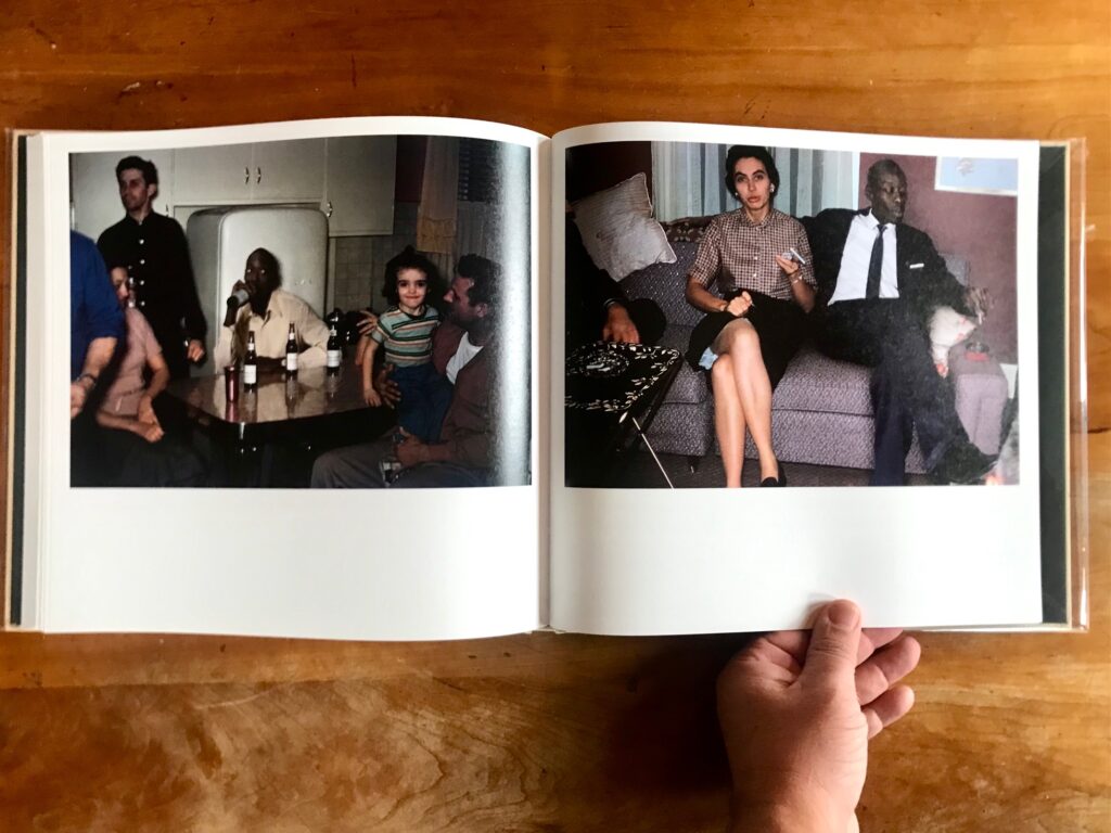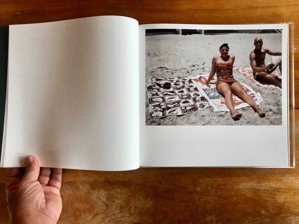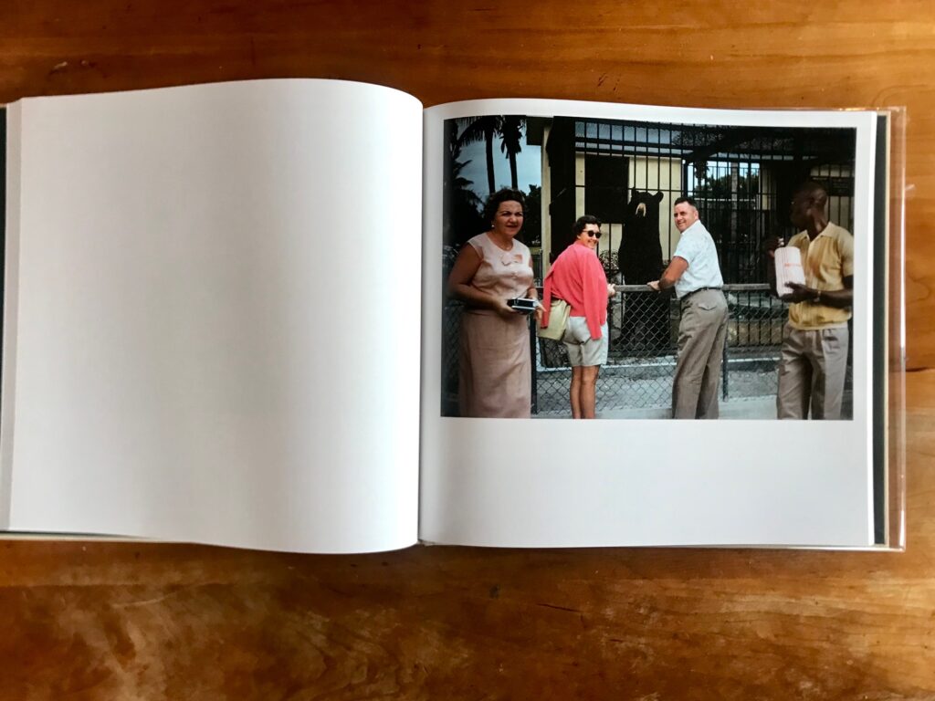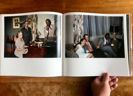 Romanticized history provides the book’s other driving force, for Shulman’s curation isn’t random. The photos were carefully selected to reflect a white nostalgic fantasy. Family snaps—and conceptions of domestic identity— took their unconscious cues from TV shows, magazines, and films of the time. Since those outlets typically excised Black culture, contemporaneous vacation slides naturally followed suit. Surely some representations of Black life were captured on slide film, and eventually found their way to Shulman’s desk. But for the purposes of this book they’ve been rendered invisible. Instead, Diop’s characters perform on Velveeta stages. His presence puts the exclamation point in every spread. Is it really possible, the reader wonders, that a public pool could entertain two hundred people and not include one Black person? After spending a few minutes scouting the faces, that fact becomes seems depressingly clear. If it’s any consolation, we eventually find Diop in the scene, engaged in conversation with two white buddies. It’s anyone’s guess what they’re discussing. Caucasian oligarchies, perhaps?
